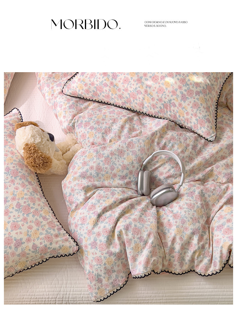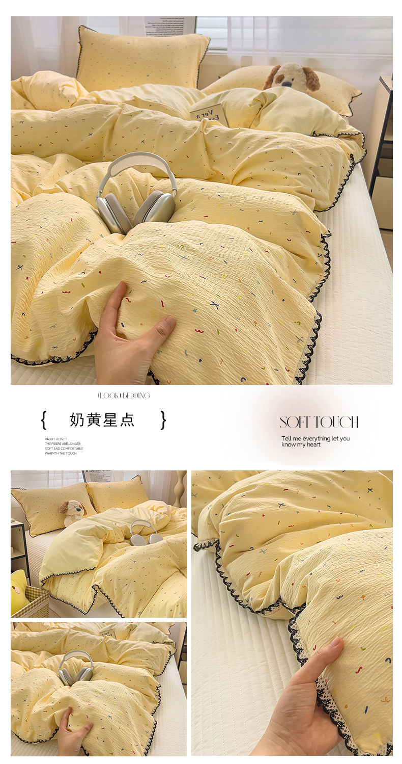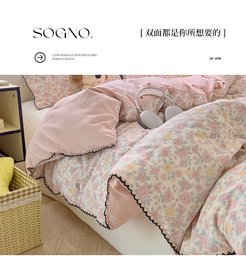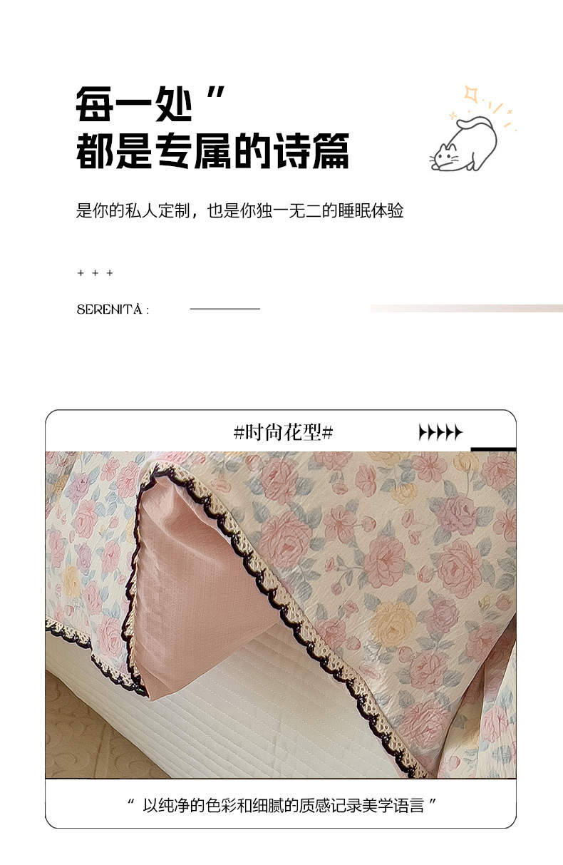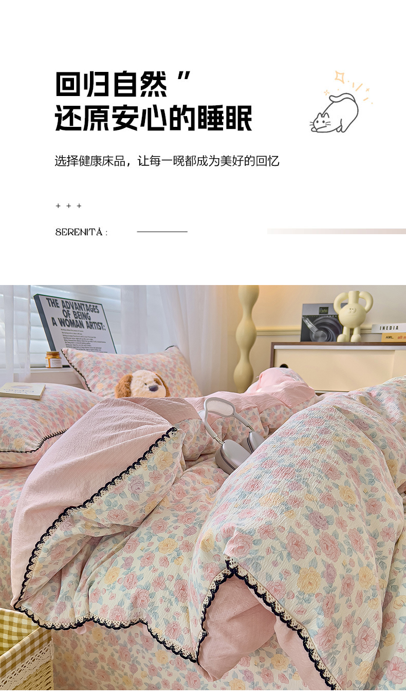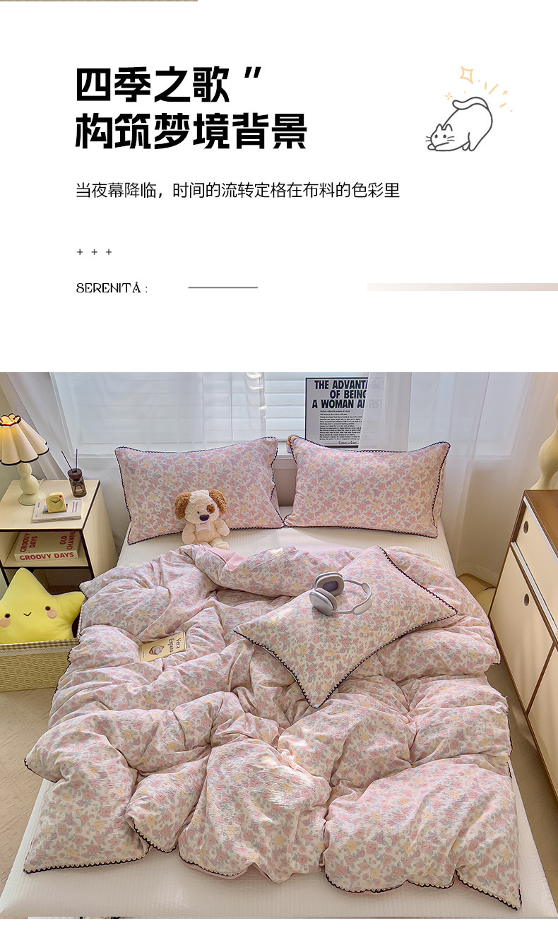 • 91家纺网 家纺一手货源 找家纺 (总)三盛源 2025新款韩系小花卉镂空花边超柔皱皱双层纱水洗棉单被套被套单件,绿野,萌趣小窝,奶油星点,泡芙小狗,桃粉,絮语,紫萝漫想,紫米樱桃
