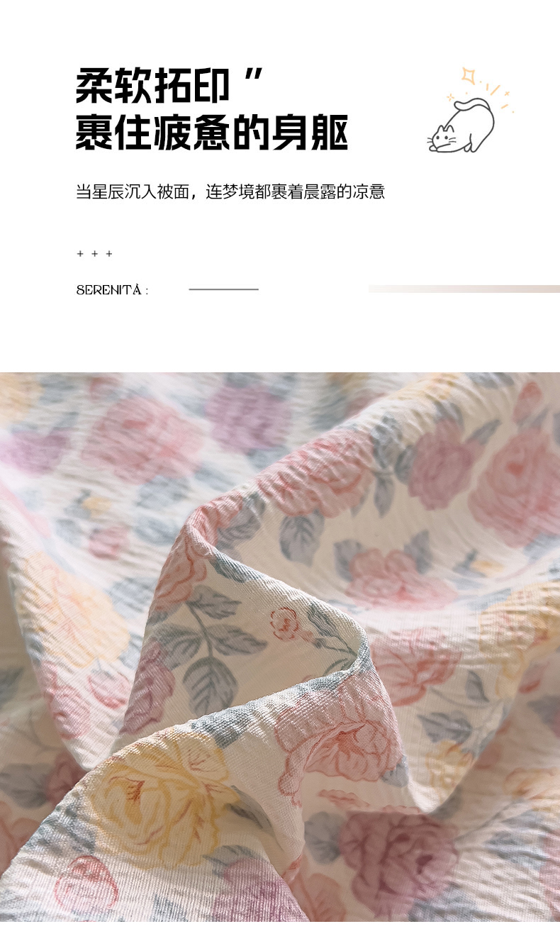 当前位置: 91家纺网 > 商品网购 > 床上用品 > 被套 > 三盛源 2025新款韩系小花卉镂空花边超柔皱皱双层纱水洗棉单被套被套单件 桃粉