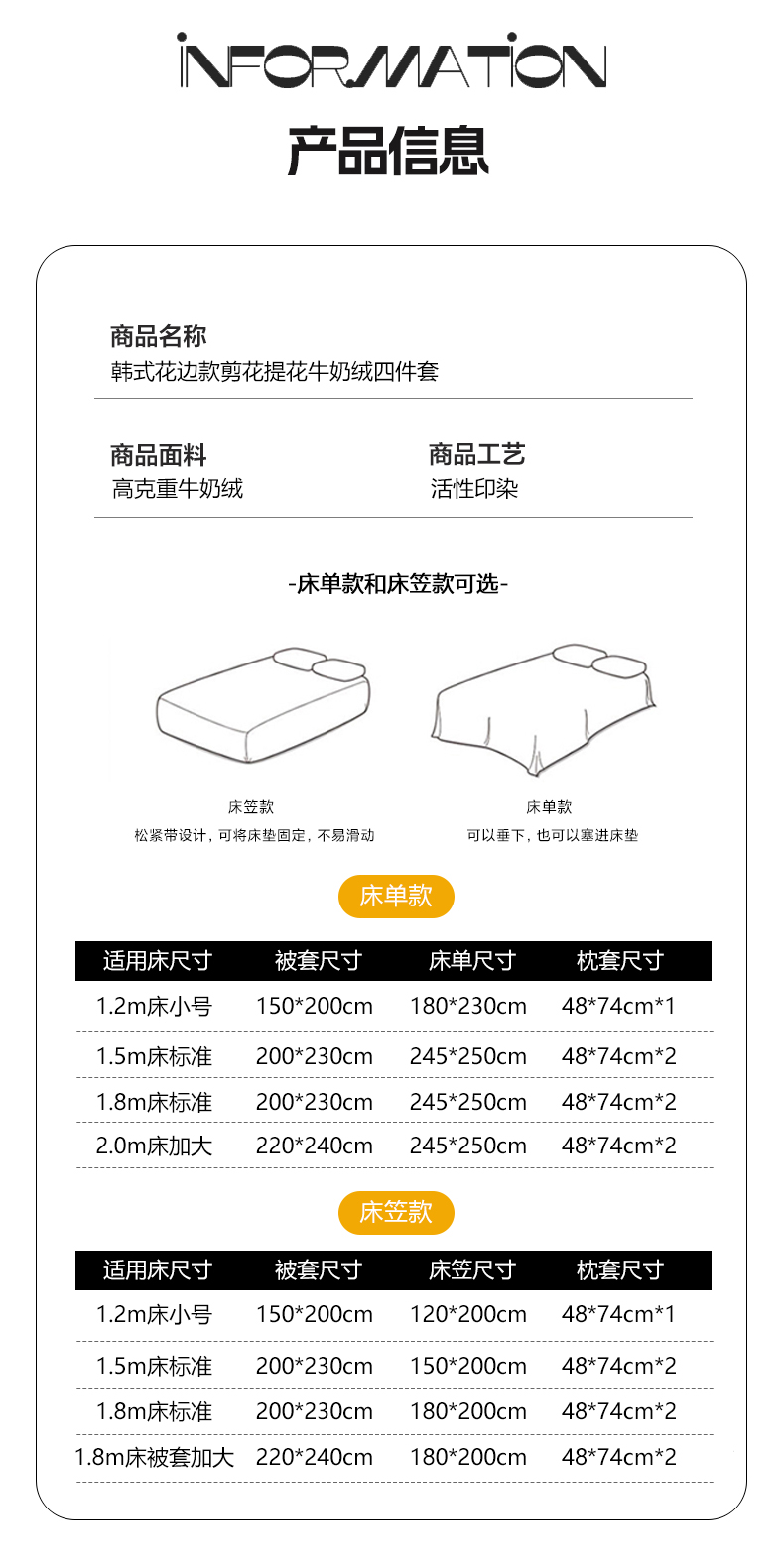 【床笠款】1.8四件套-被套220x240 | ¥150.00 |