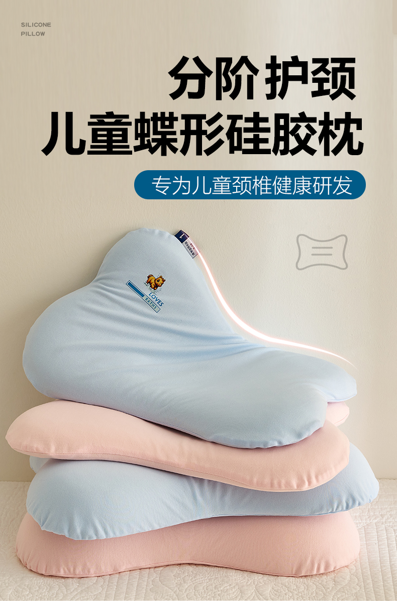当前位置: 91家纺网 > 商品网购 > 枕头/枕芯/保健枕/颈椎枕 > 普通枕芯 > 乐可 2025新款蝶形儿童硅胶枕婴童学生枕头枕芯 蝶形儿童硅胶枕-蓝-G2 35*55*6cm/只