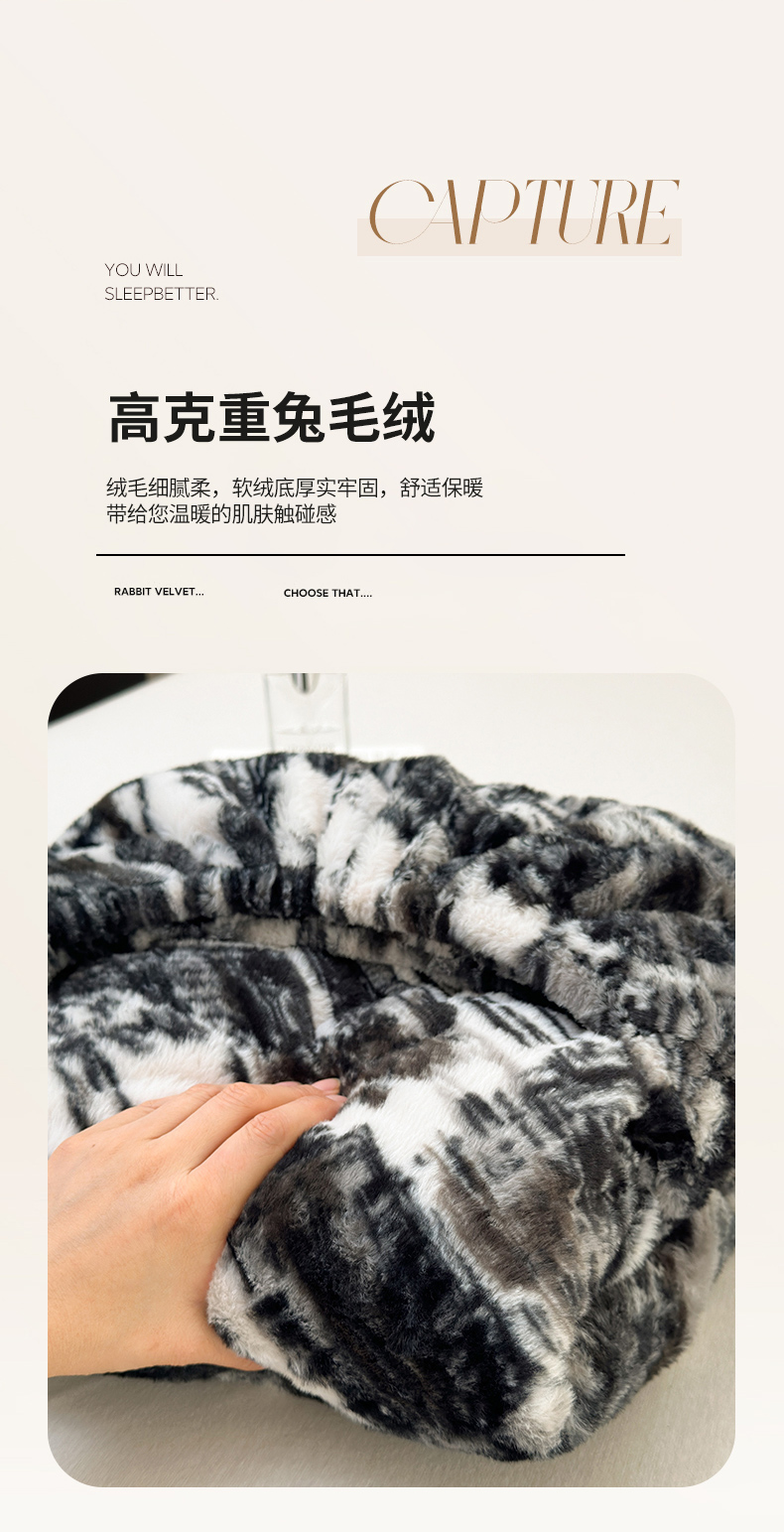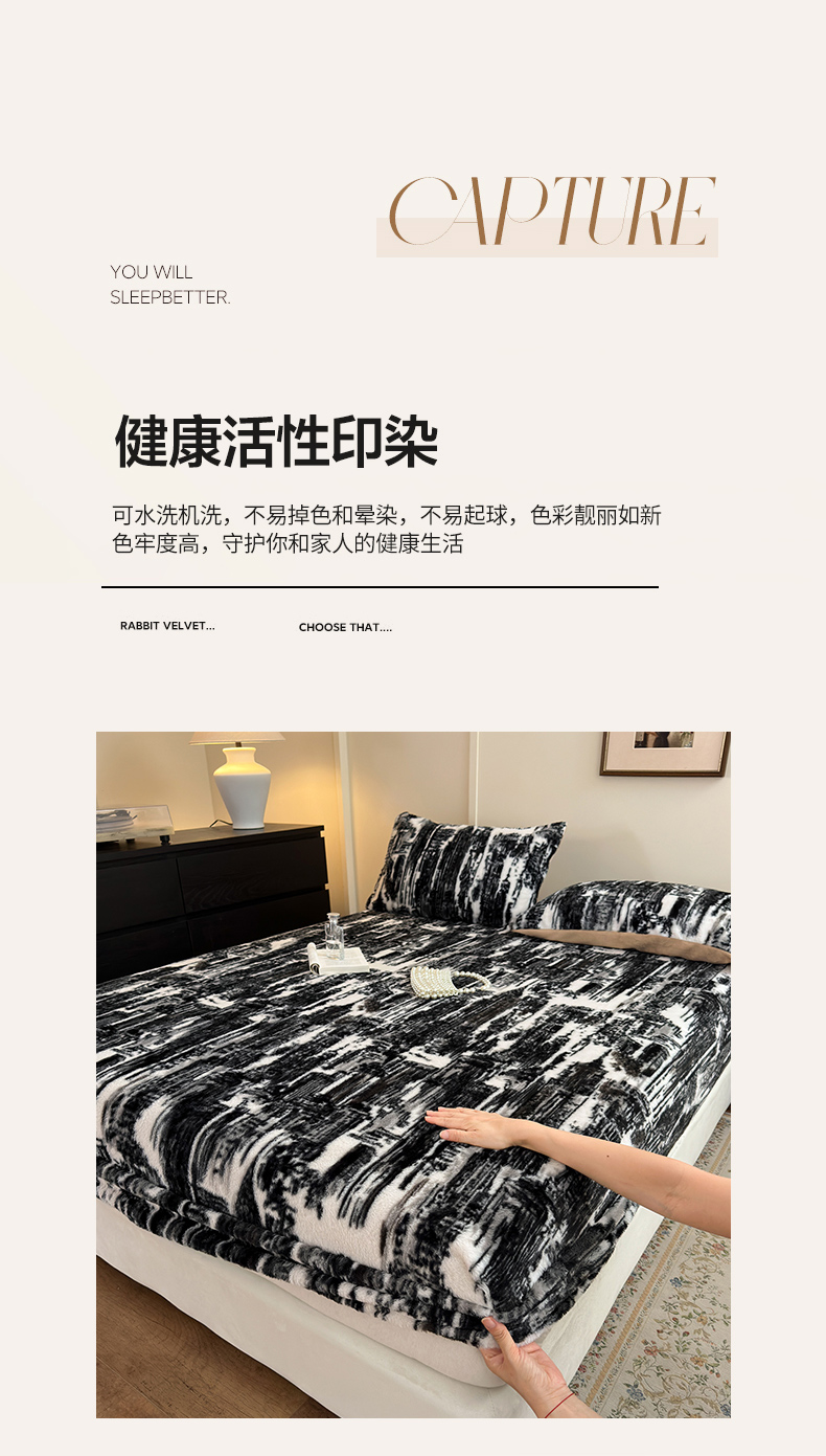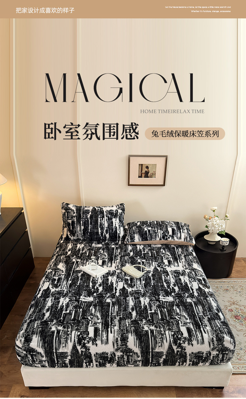 (总)娜娜 2025新款兔毛绒保暖床笠,黑牡丹,幻影,水墨画,妩媚,夜豹,组合图仅供展示