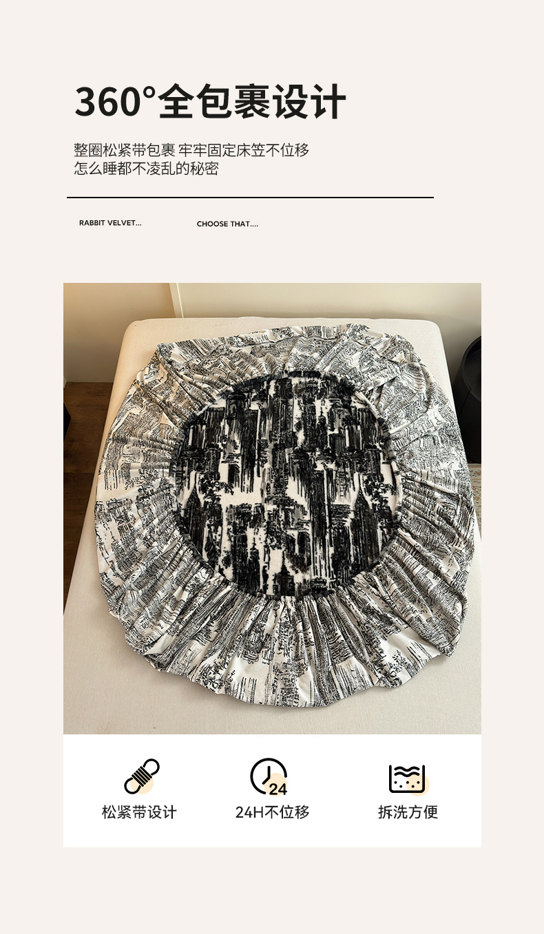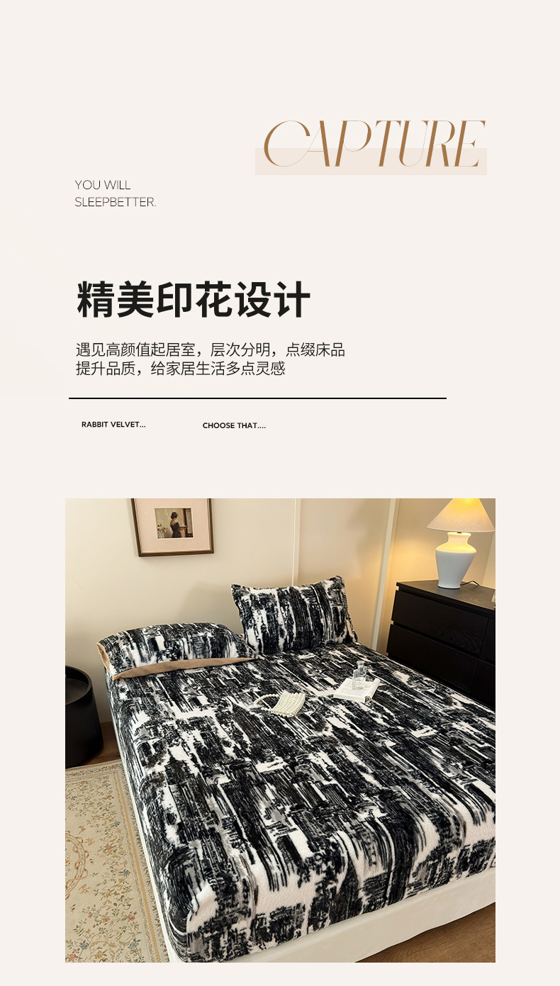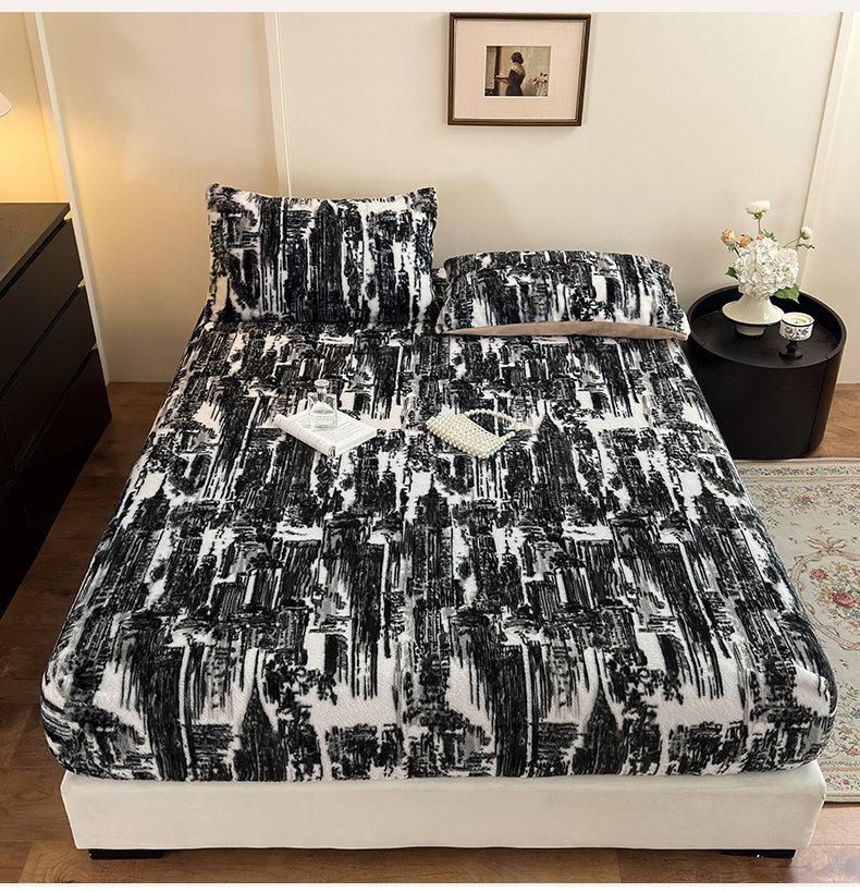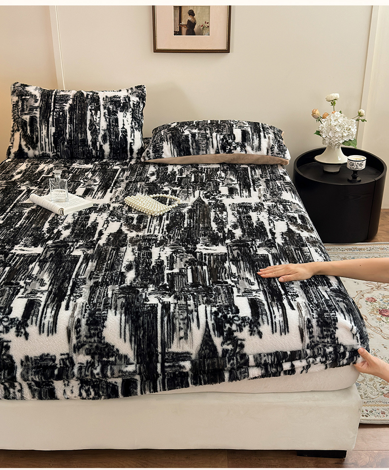 商品名称:娜娜 2025新款兔毛绒保暖床笠 水墨画