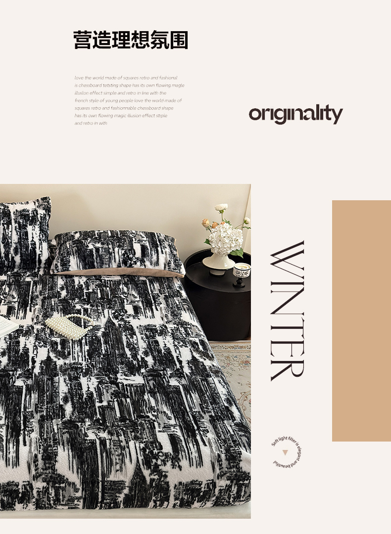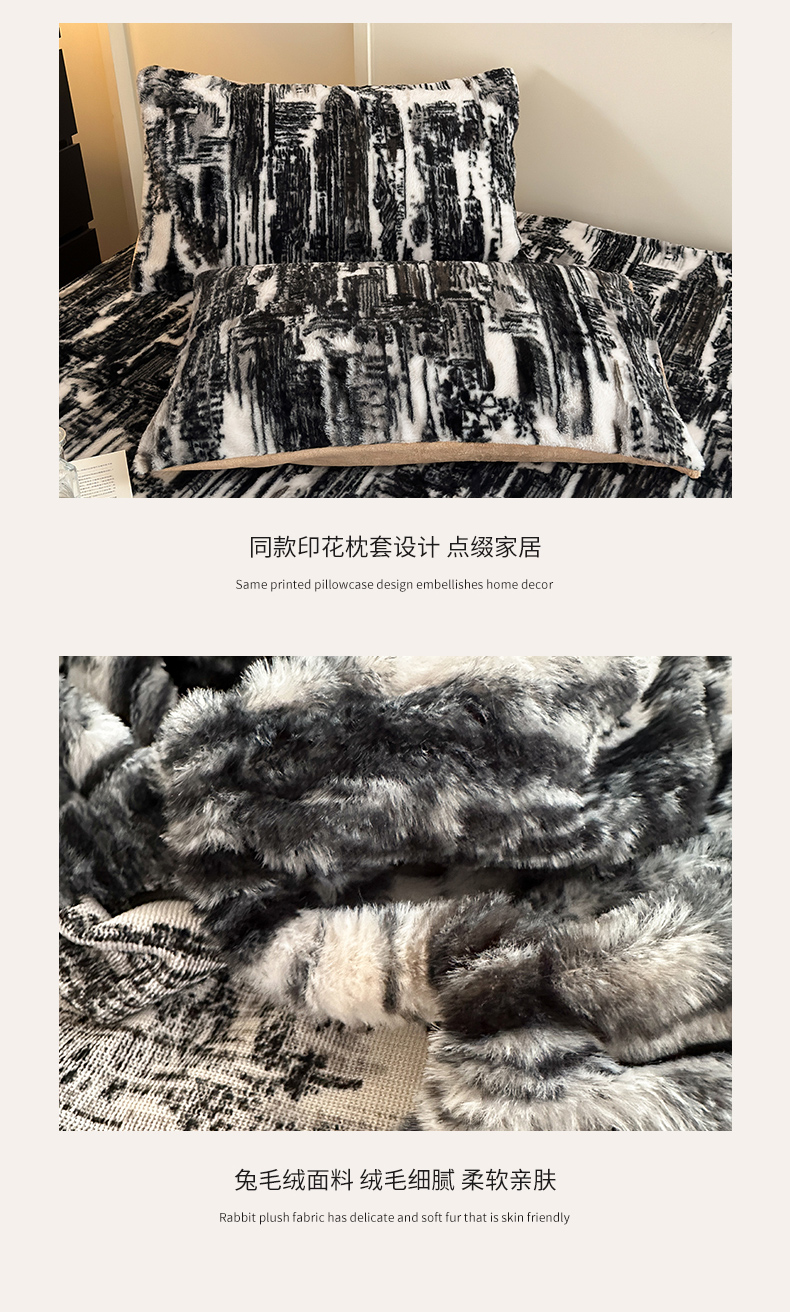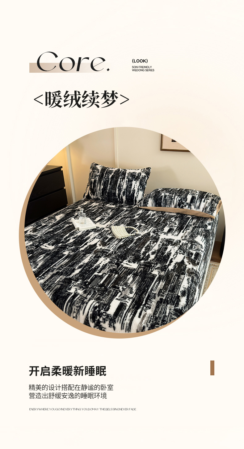 商品名称:娜娜 2025新款兔毛绒保暖床笠 水墨画