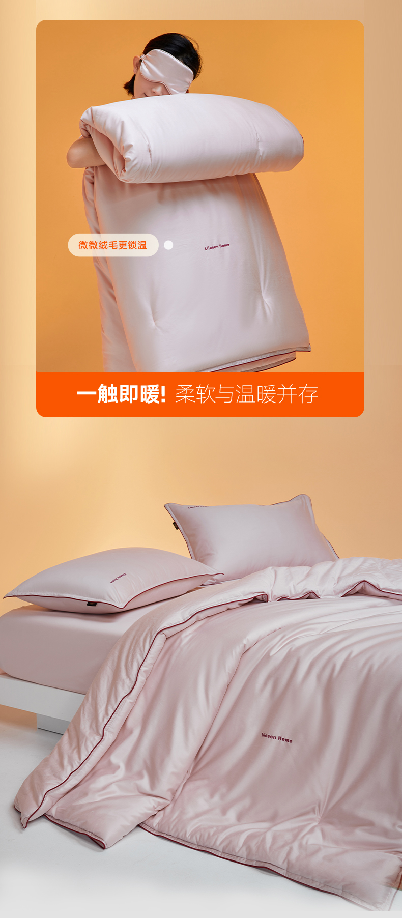 • 91家纺网 家纺一手货源 找家纺 丽笙被芯 2025新款秋冬亲肤舒适80S超细旦天丝棉微磨毛素色可水洗懒人被-场景一 日光粉