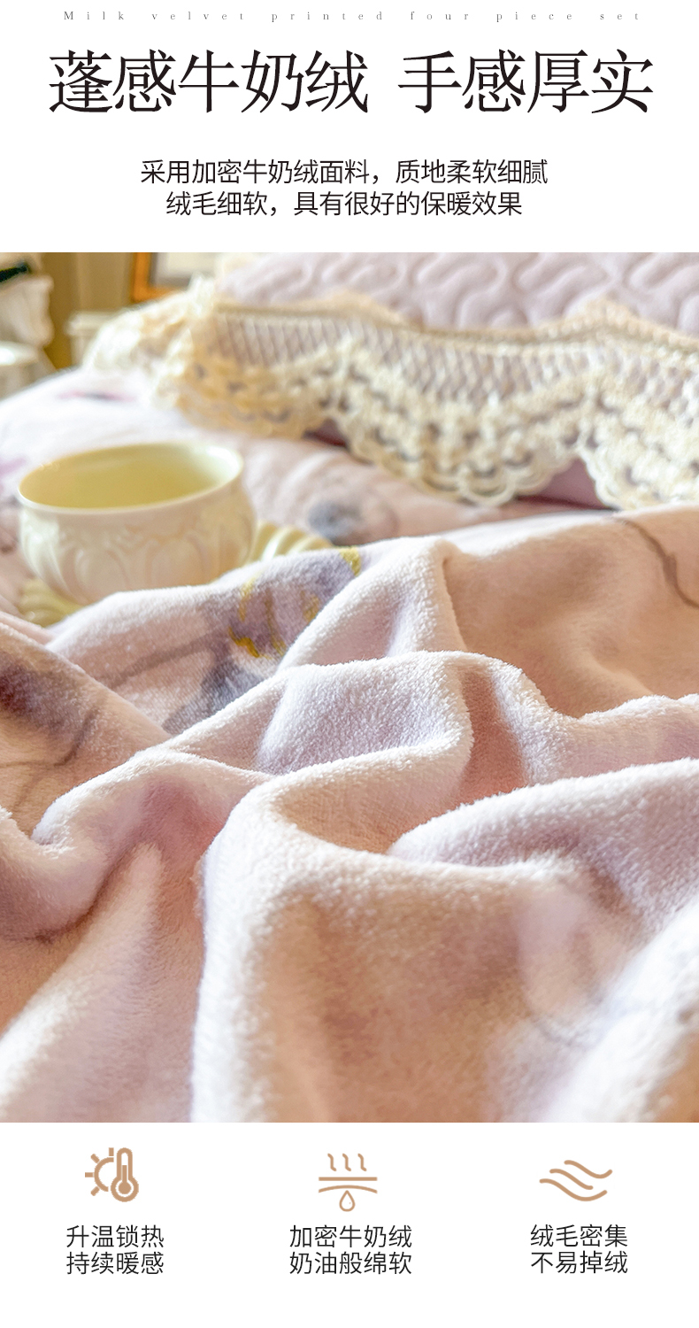 当前位置: 91家纺网 > 商品网购 > 床品套件 > 四件套 > 牛奶绒四件套 > 网红馆(ck家纺) 2025新款牛奶绒印花床盖款四件套 半岛红茶