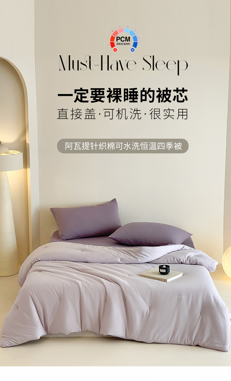 商品名称:丽笙被芯 2025新款阿瓦提针织棉可水洗恒温四季被懒人被被子被芯 艾草紫