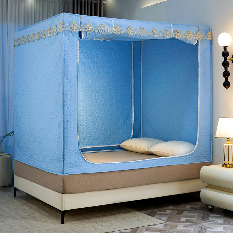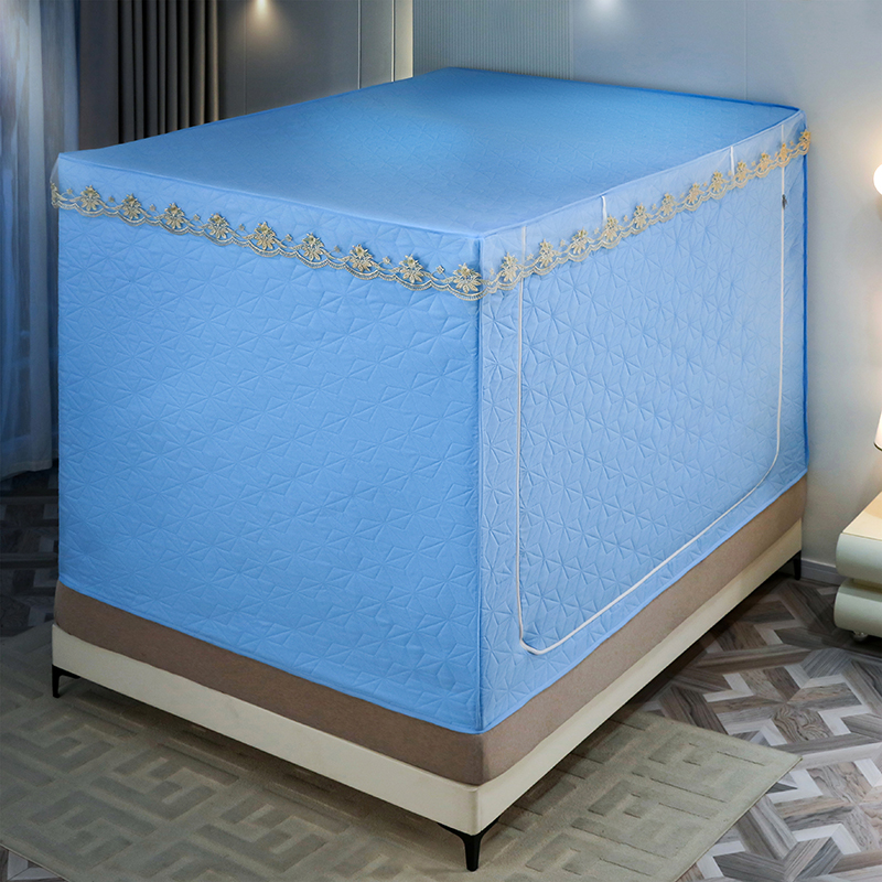 窝里暖 2025新款冬季保暖夹棉遮光帘蚊帐(五块夹棉) 蓝色