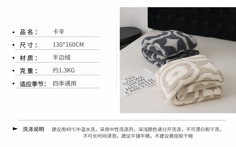 暖绵绵家纺 新款半边绒几何图案复古韵味针织毯-卡辛(最低零售价:173元) 米色-卡辛