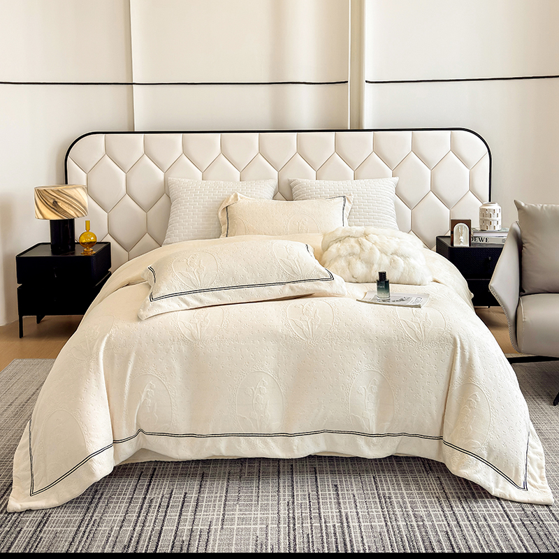 (总)若未家居 2023 新款高支高密长绒棉进口镂空款四件套 -爱法,橄榄绿,贵族红,皓月白,湖水蓝,羊脂玉