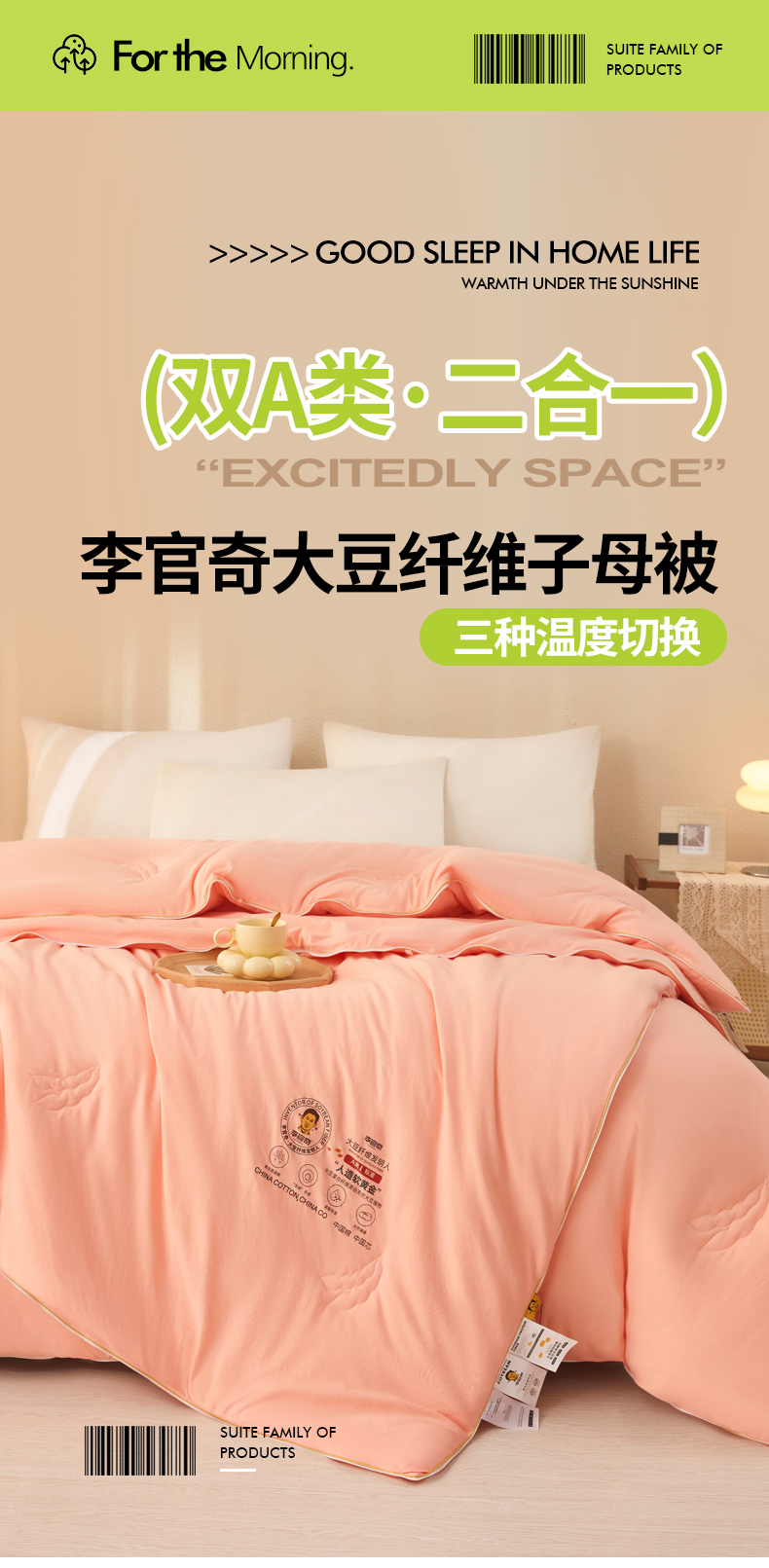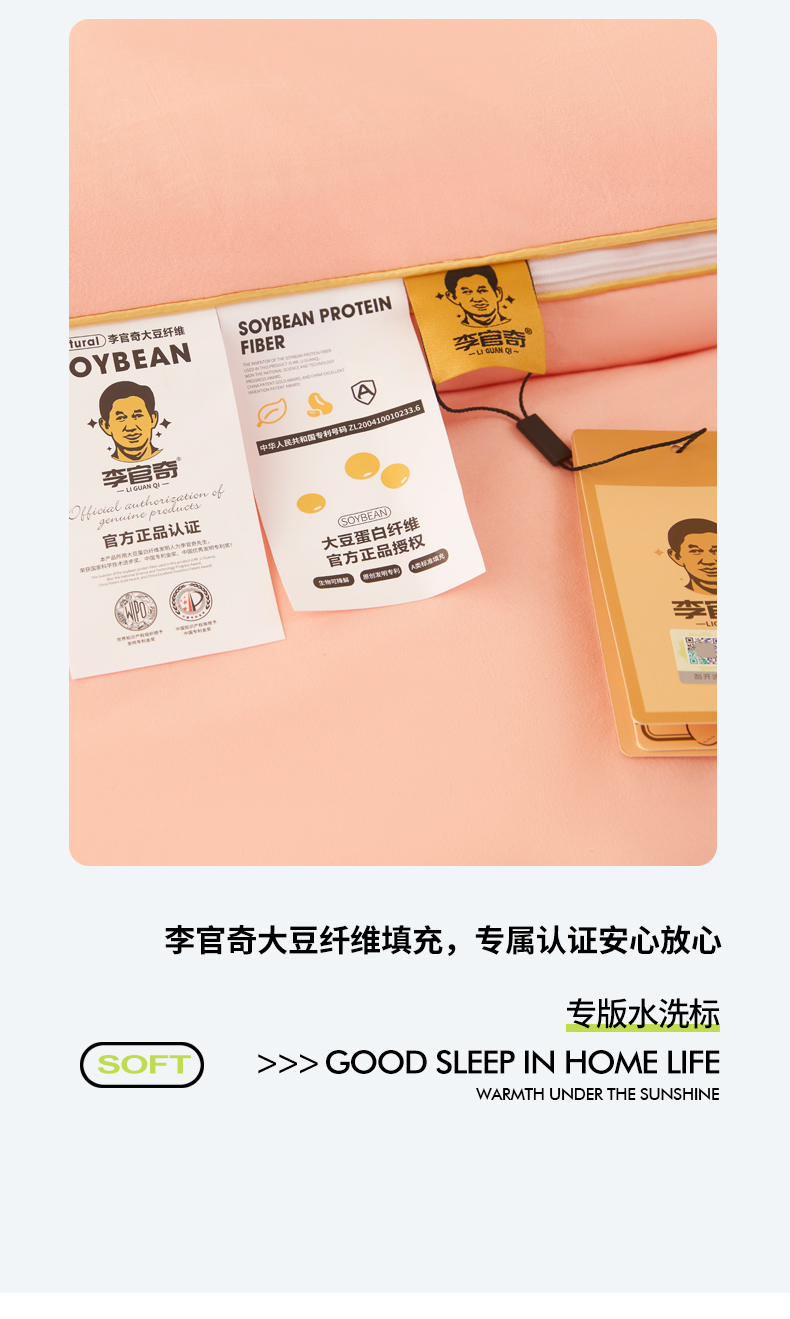 商品名称:(总)恒科家纺 2025新款李官奇官方正品认证李官奇大豆纤维被 子母被拉链二合一被子被芯