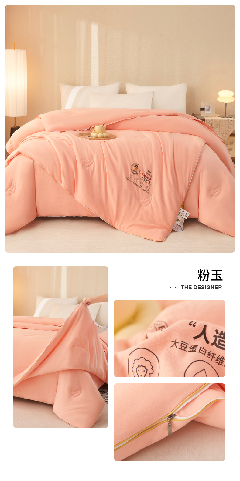 (总)恒科家纺 2025新款李官奇官方正品授权 李官奇大豆纤维被 拉链二合一子母被 被芯 春秋被 冬被 夏被 (提供买家秀),粉玉,浅灰,米白