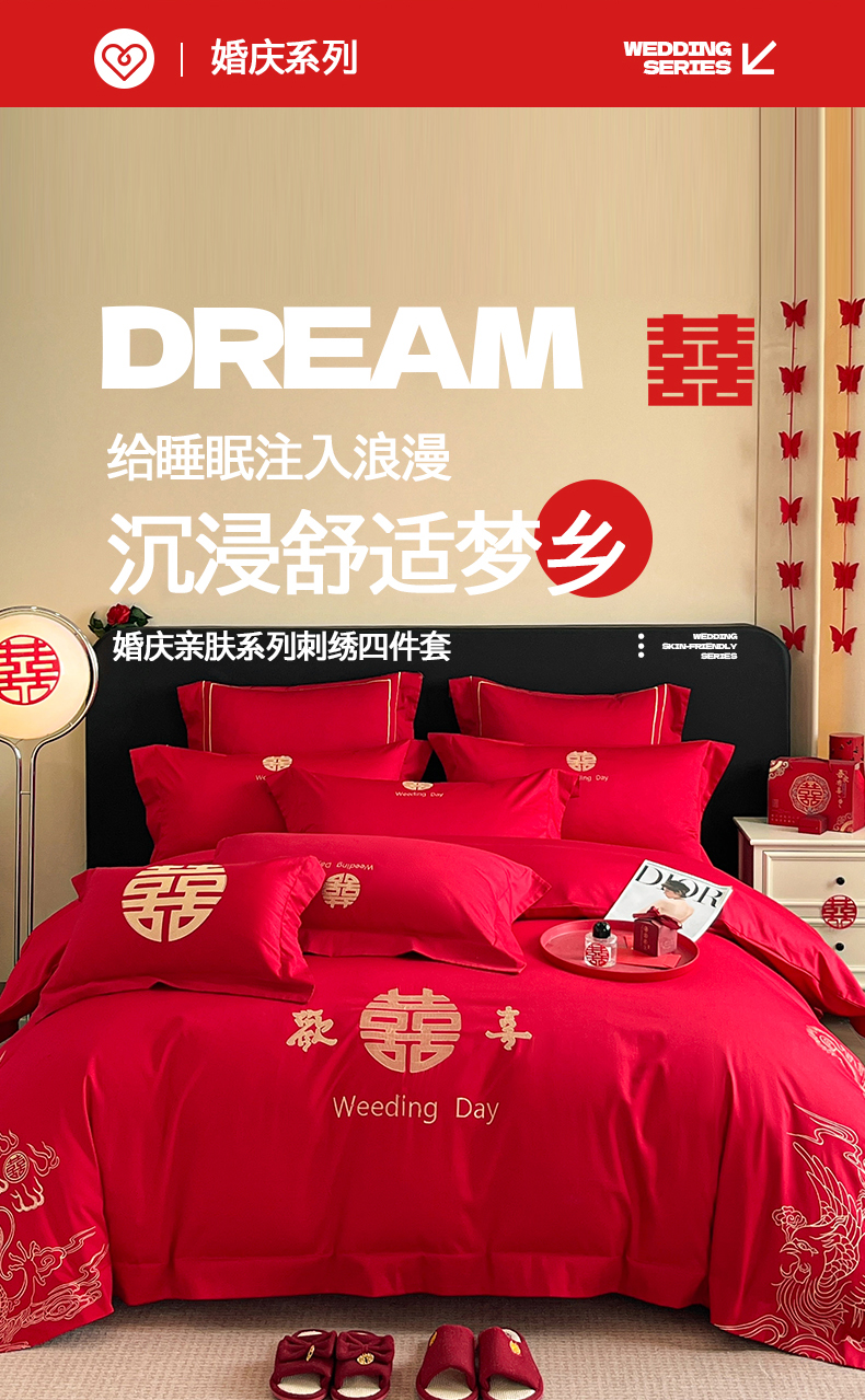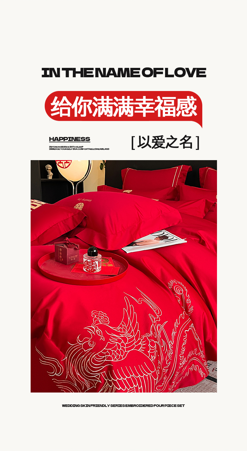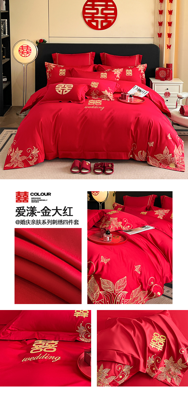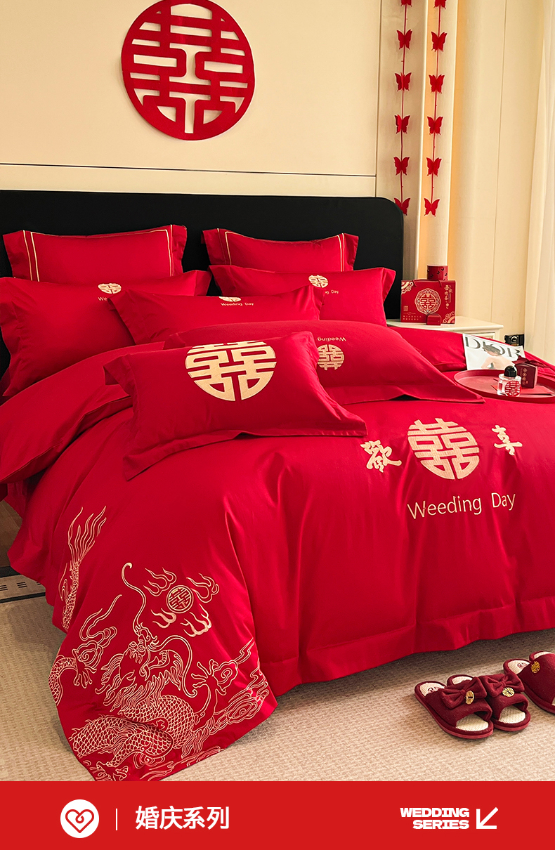 当前位置: 91家纺网 > 商品网购 > 床品套件 > 四件套 > 婚庆四件套 > 置顶家纺 2025新款亲肤刺绣婚庆四件套 龙翔凤起-金大红