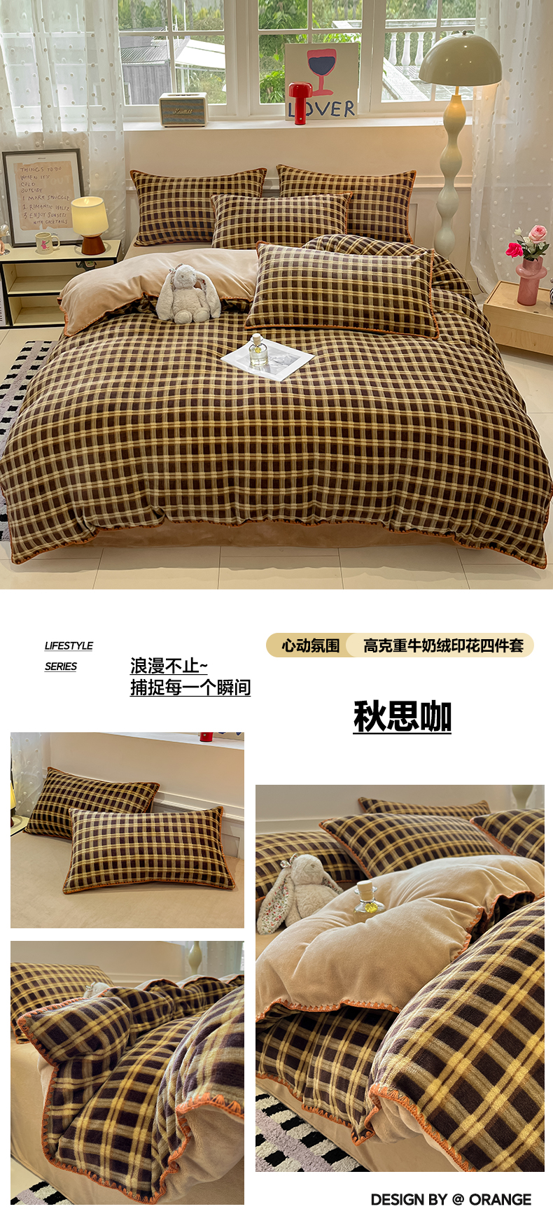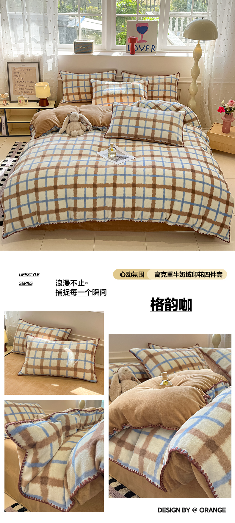 (总)如一 2025新款A类高克重牛奶绒印花三角针工艺四件套,秘境蓝,安梦,暗香,格韵咖,流年绿,芒种,秋思咖,香榭,芽青,雅韵蓝,英伦红,英伦蓝