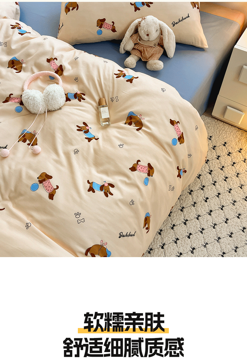 曼璐家纺 2025新款碎花双拼水洗棉四件套学生宿舍三件套单双人被套和床笠款单被套 旺仔