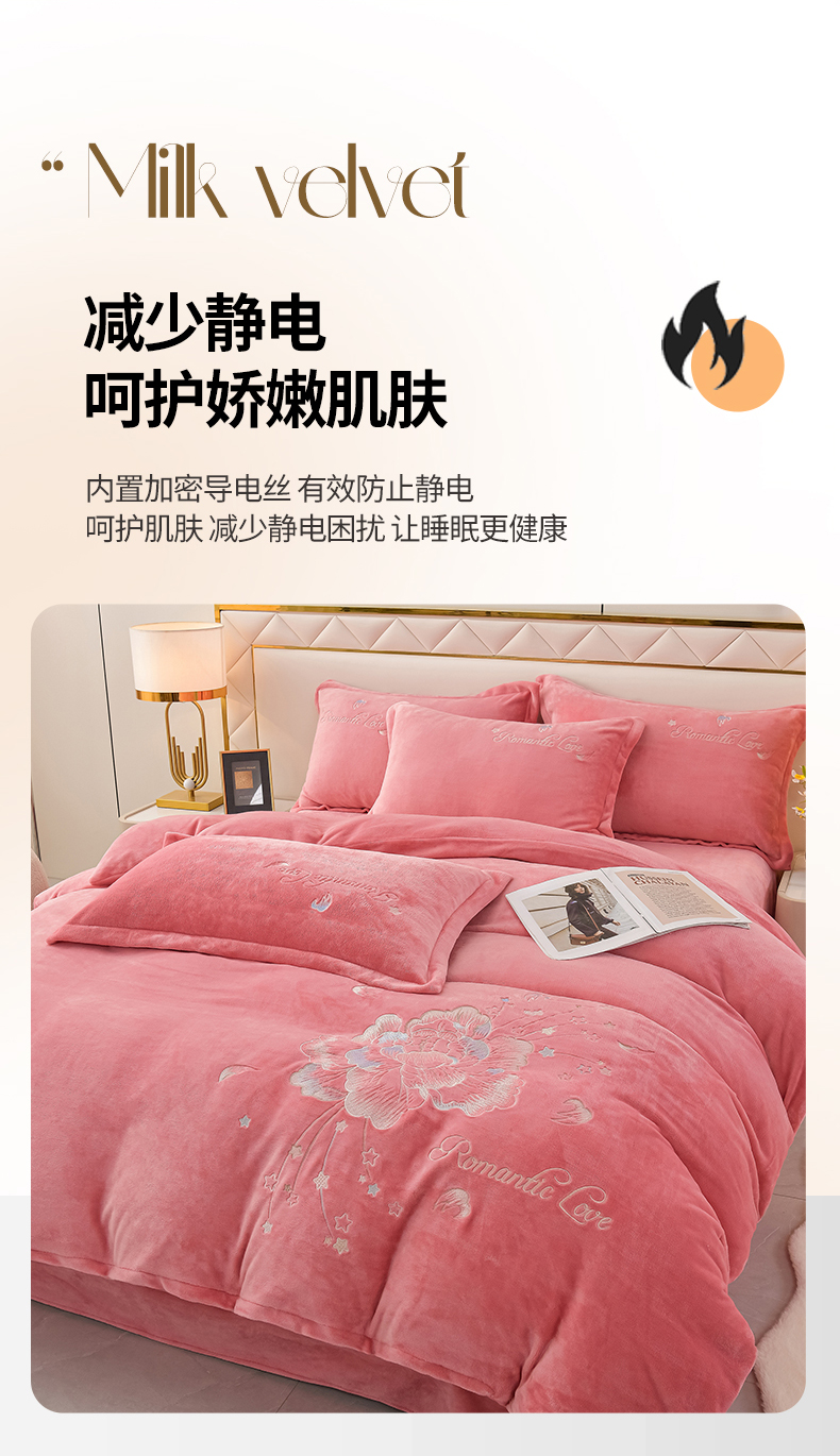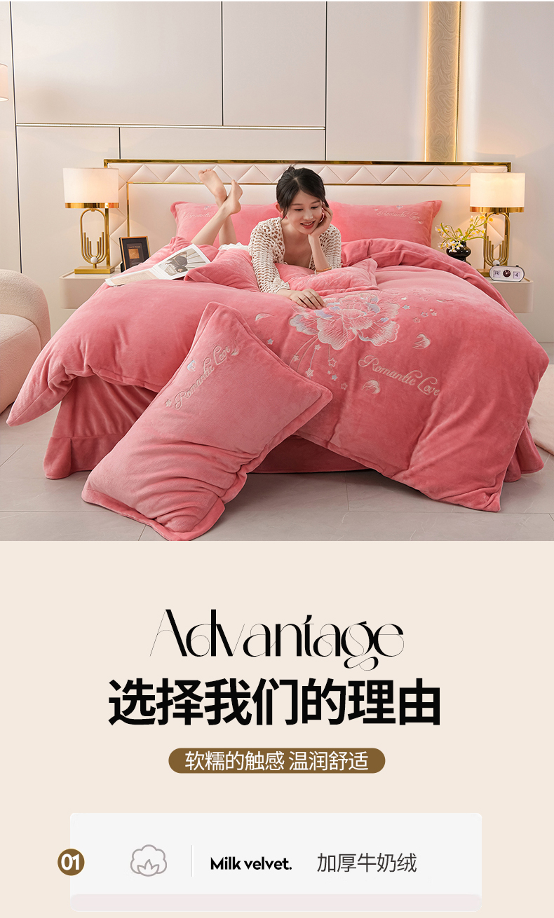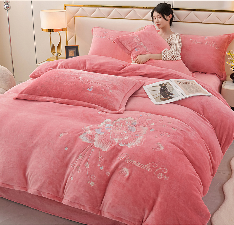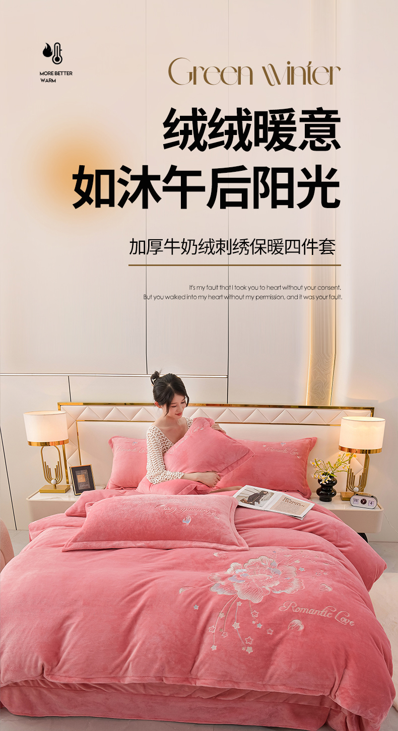 商品名称:(总)绒小宣 2025新款加厚牛奶绒刺绣花保暖四件套-花开富贵提供买家秀