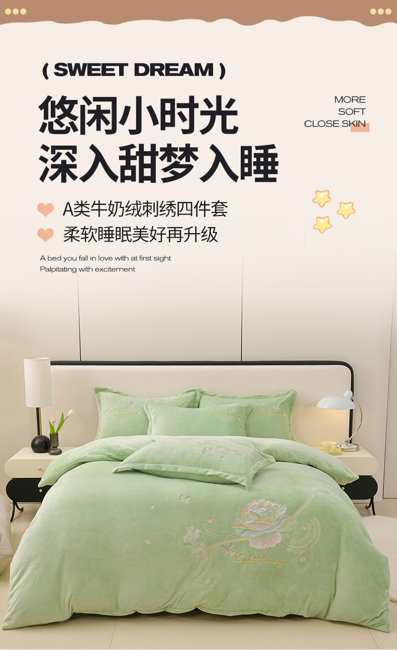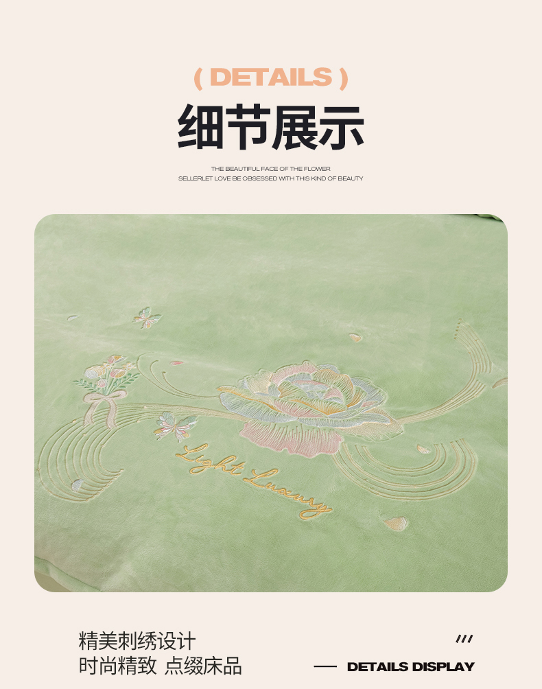 (总)绒小宣 2025新款A类牛奶绒刺绣四件套-蝶恋花,木果绿,豆沙色,帝都灰,浅夏紫,晴山蓝,芍药粉,苏打橙,天空兰,浅粉