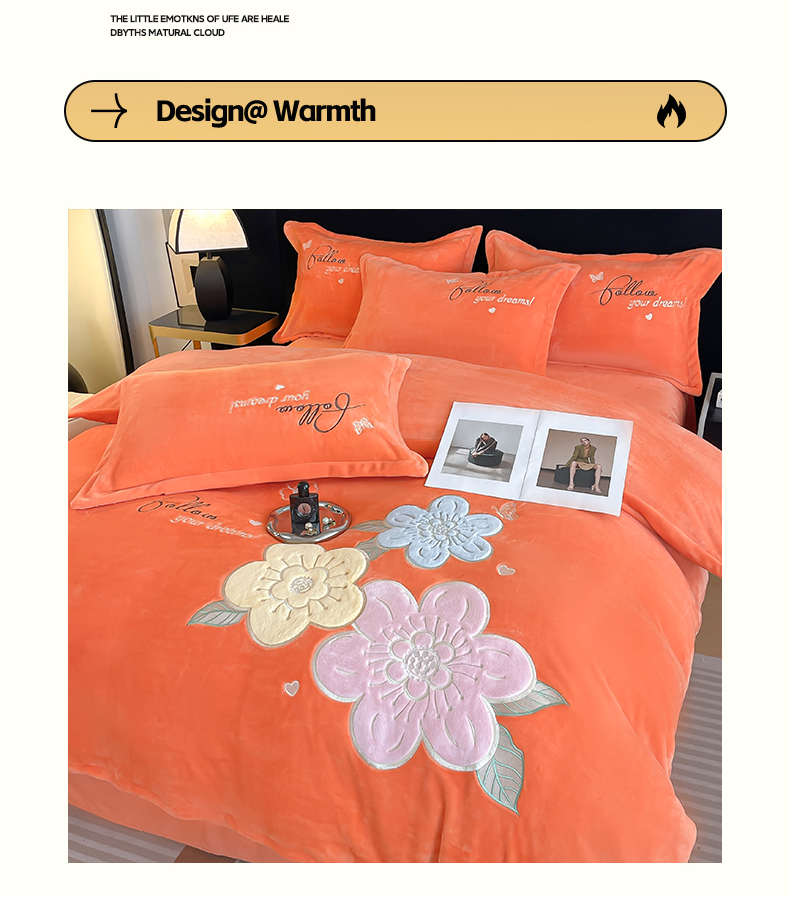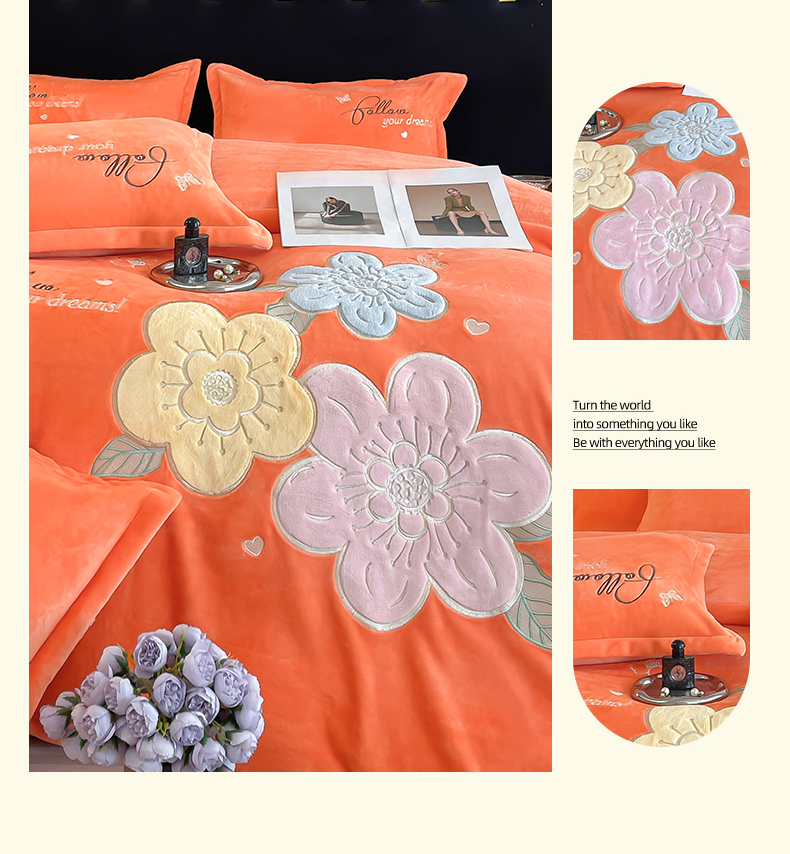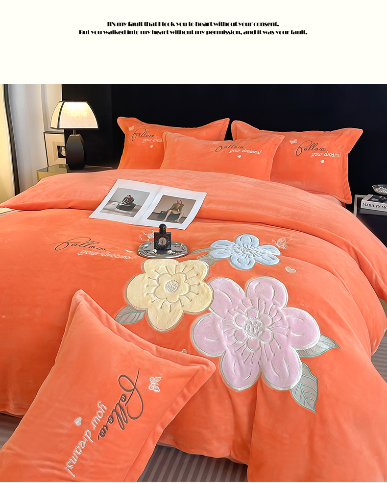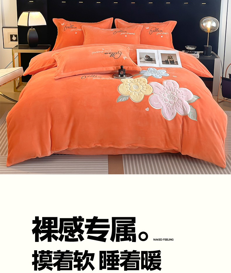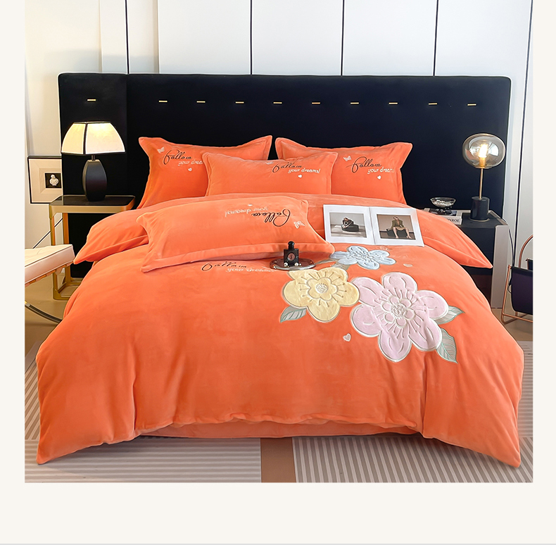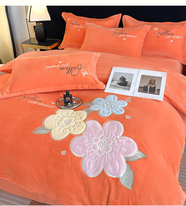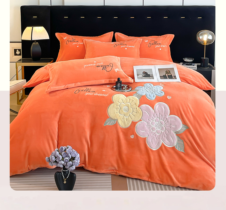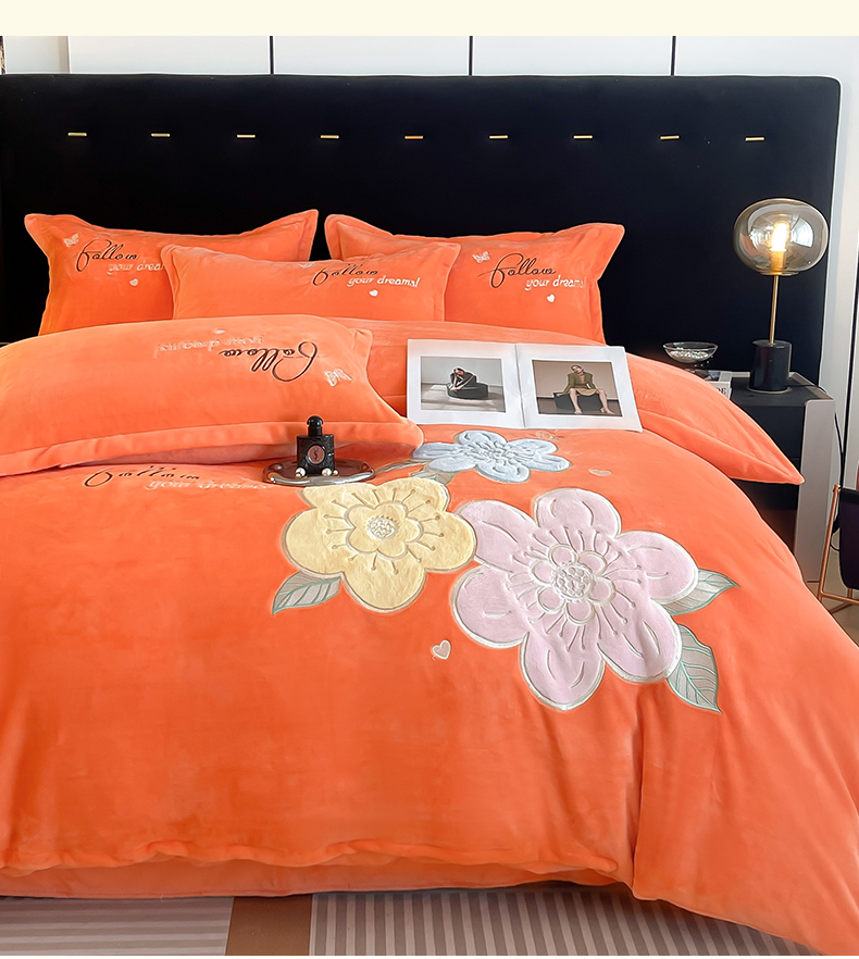 绒小宣 2025新A类牛奶绒贴布绣四件套-花语 花语-清新橙
