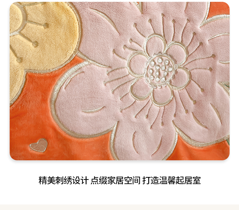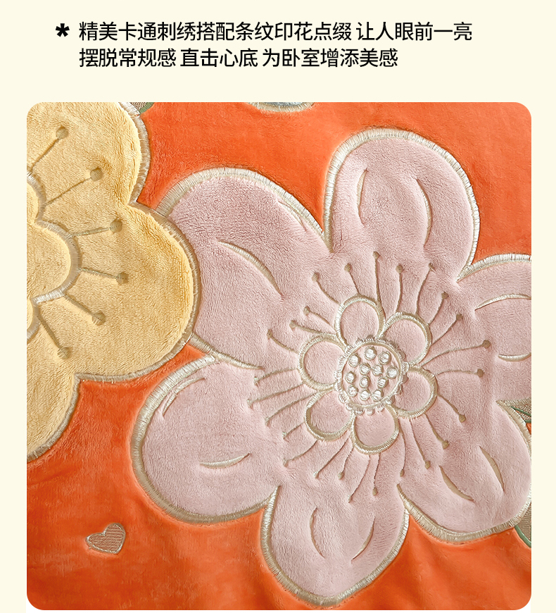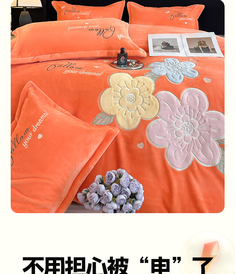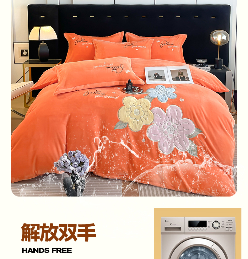 商品名称:绒小宣 2025新A类牛奶绒贴布绣四件套-花语 花语-清新橙