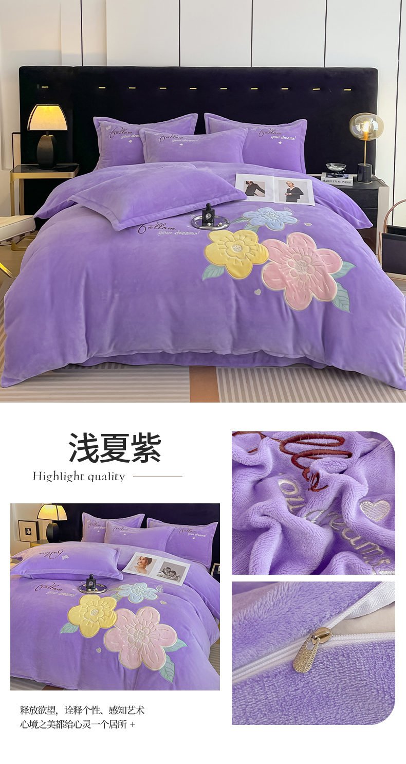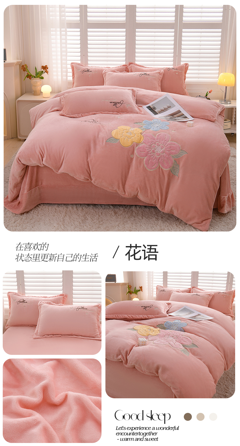 (总)绒小宣 2025新A类牛奶绒贴布绣四件套-花语,花语-浅粉,花语-宝石蓝,花语-豆沙色,花语-抹茶绿,花语-浅夏紫,花语-清新橙,花语-芍药粉,花语-天空兰