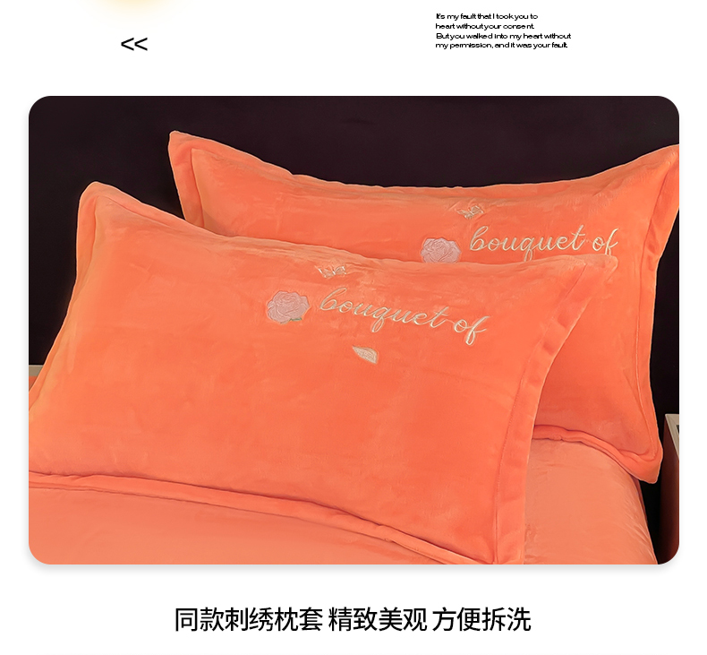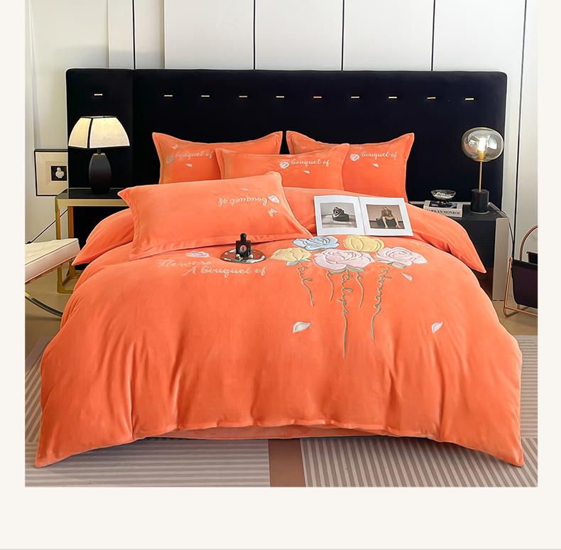 绒小宣 2025新款A类牛奶绒贴布绣四件套-玫瑰爱恋 玫瑰爱恋-橙色