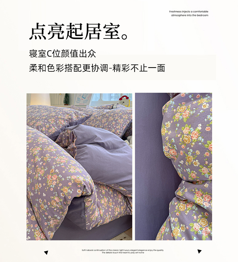 商品名称:(总)凯洛奇 2026新款A类仿棉四件套古法水洗棉小清新印花四件套单被套系列