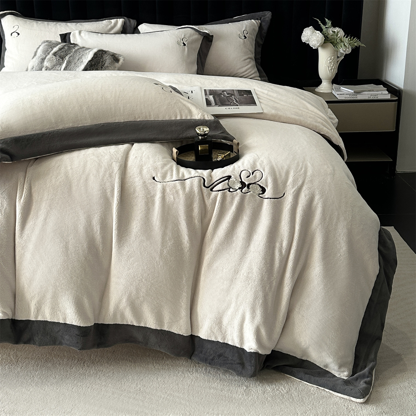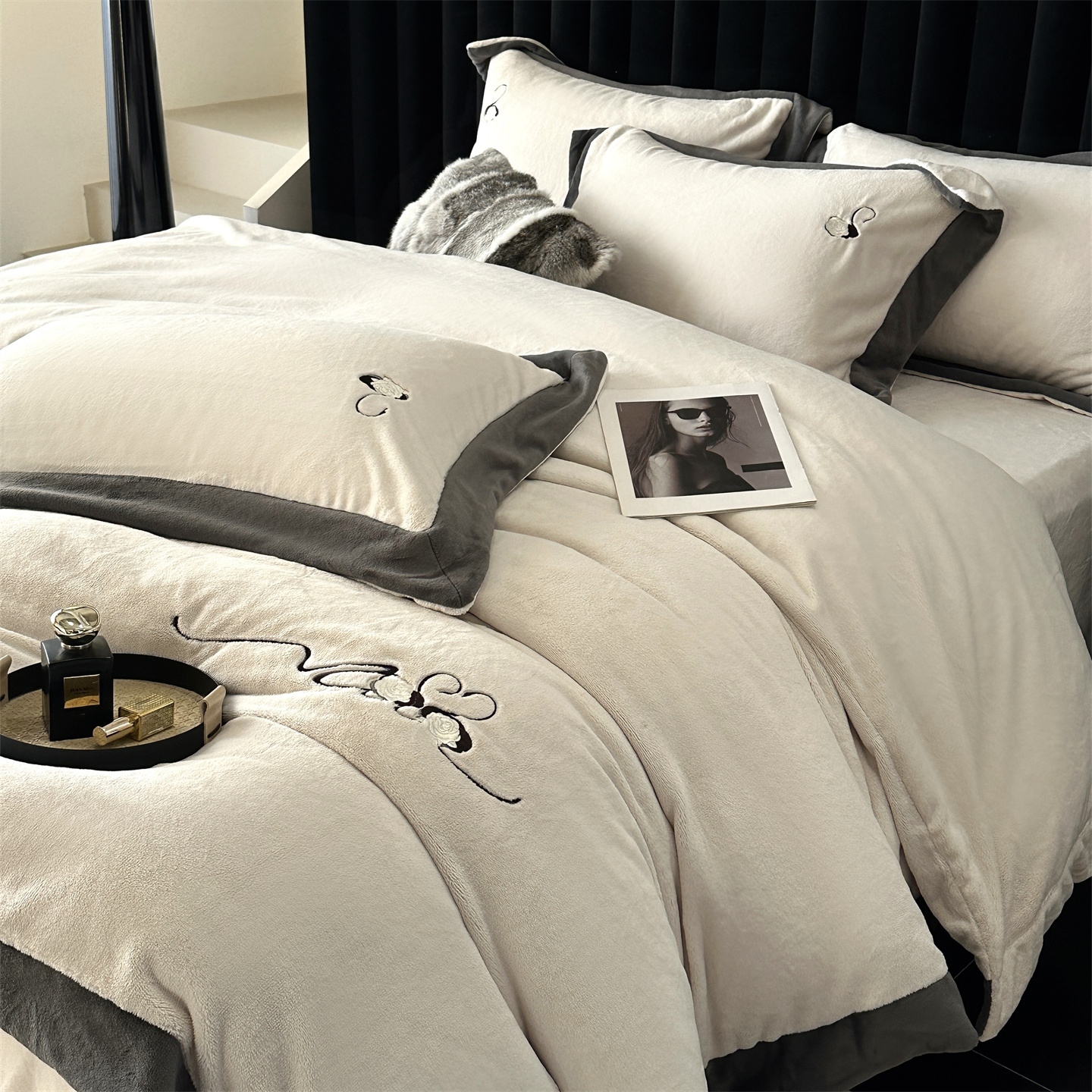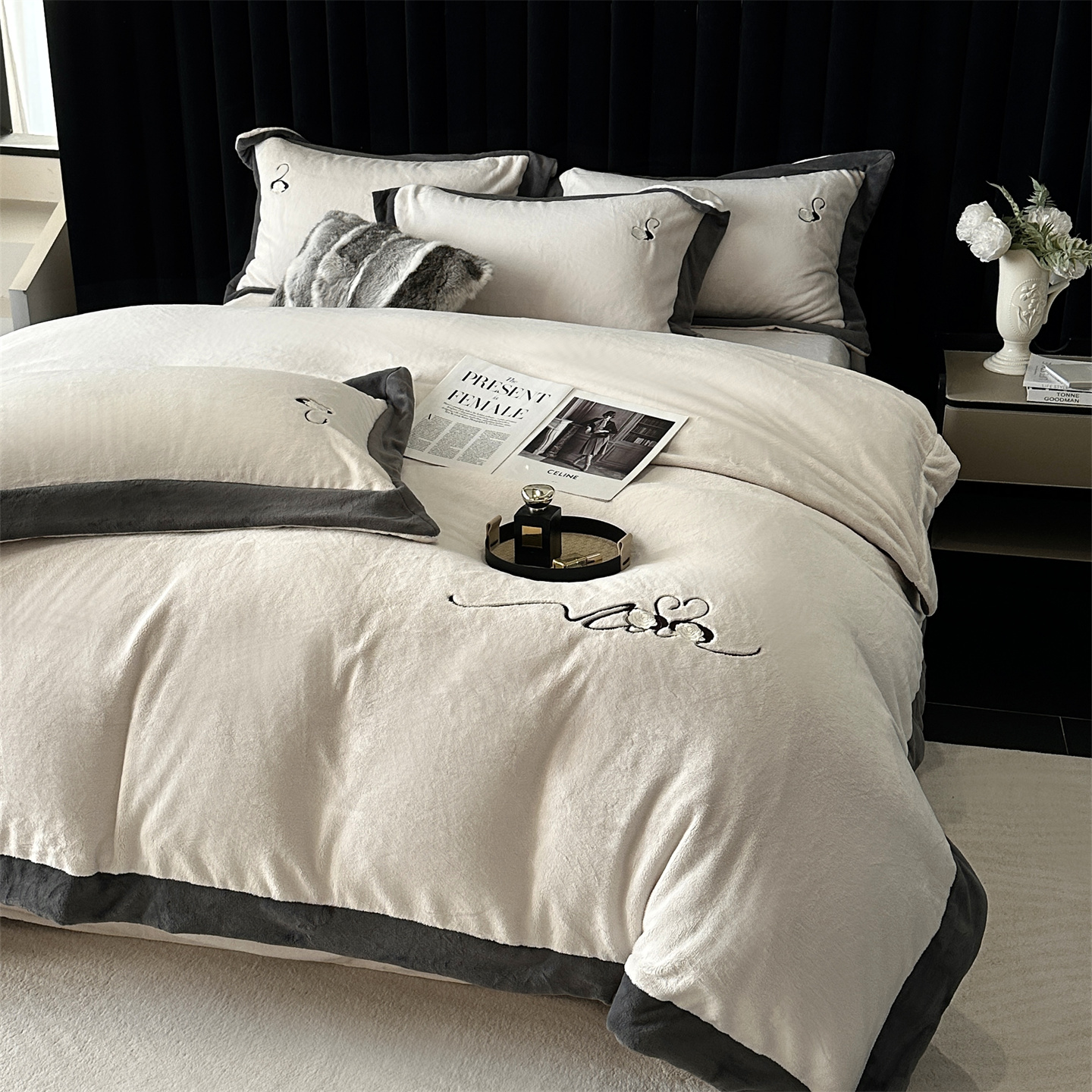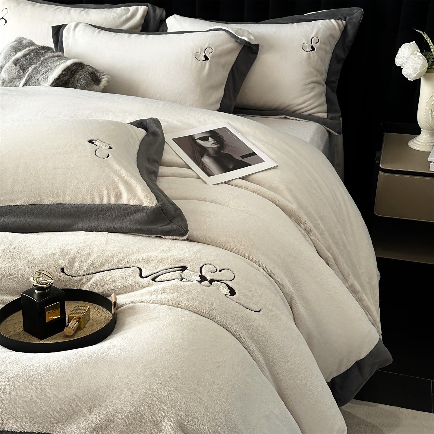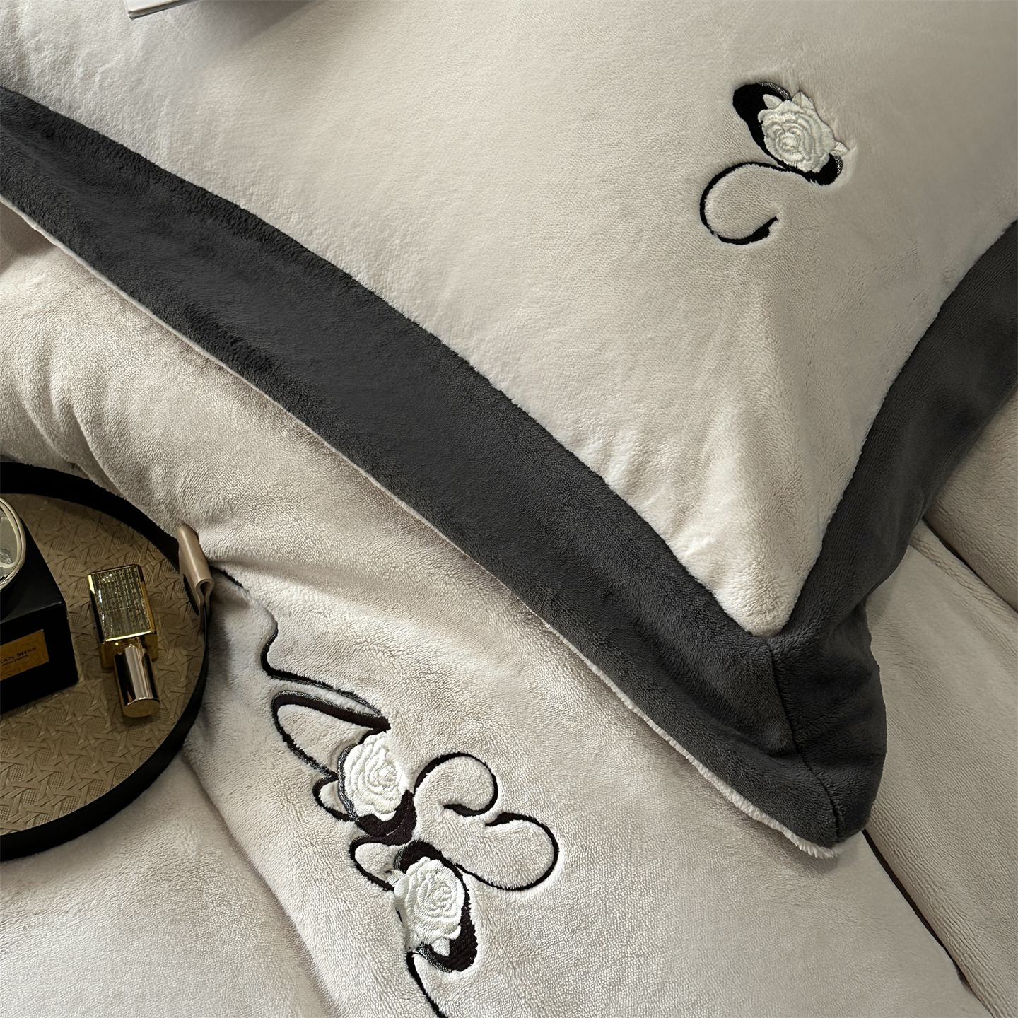 (总)南泉坊 2025新款230克全消光牛奶绒刺绣四件套,墨尔本-豆沙,墨尔本-灰,墨尔本-咖