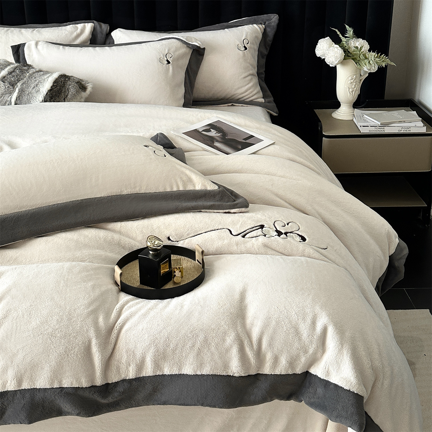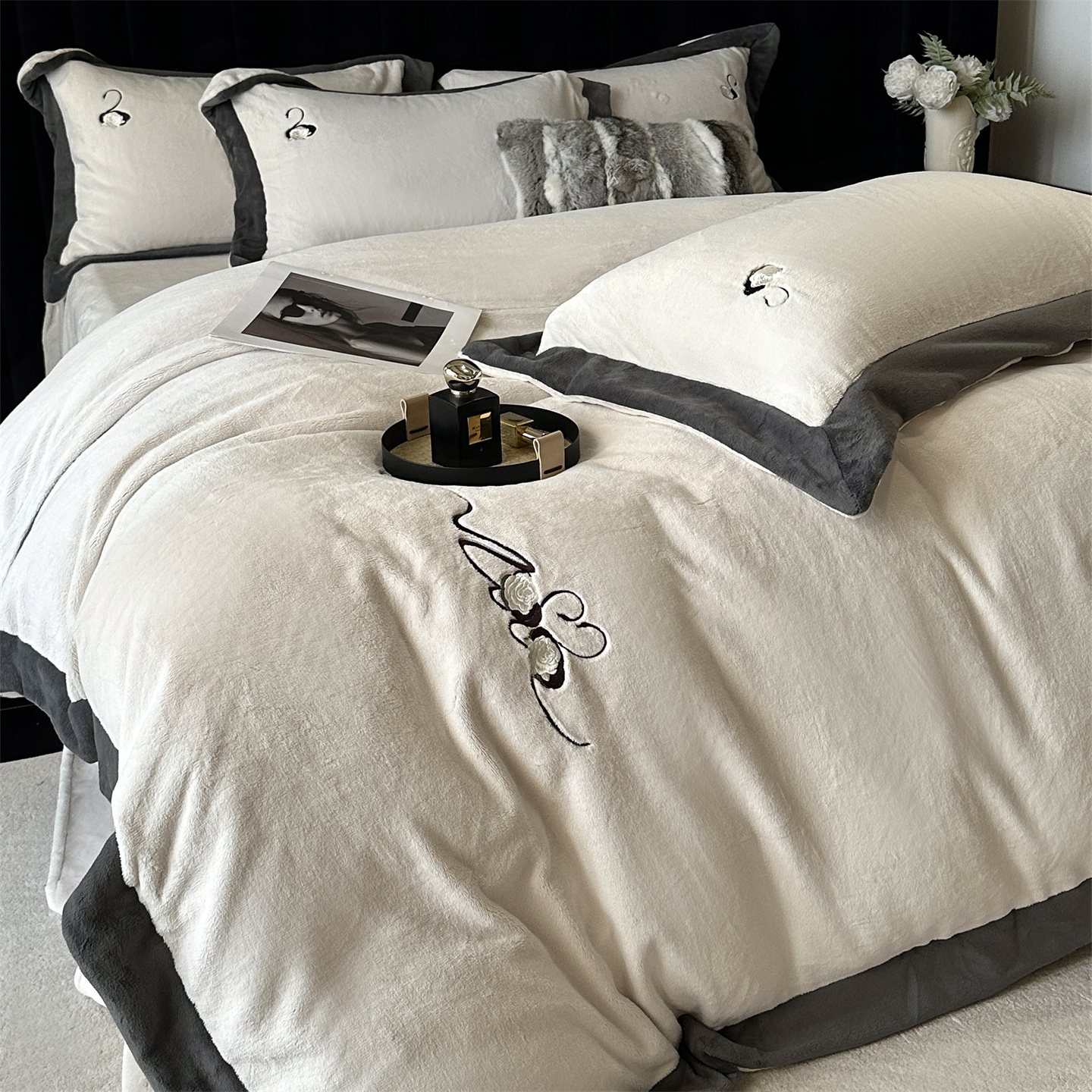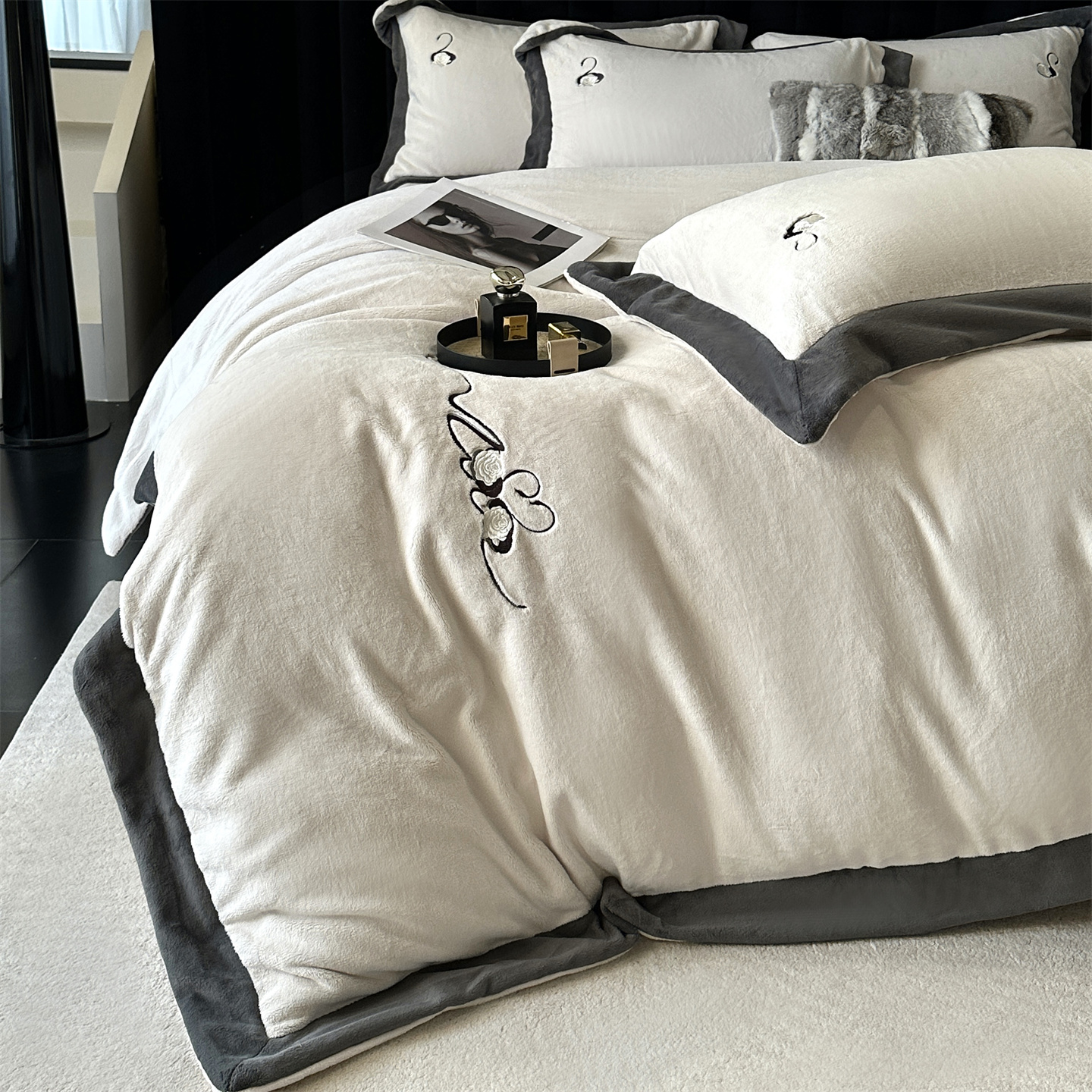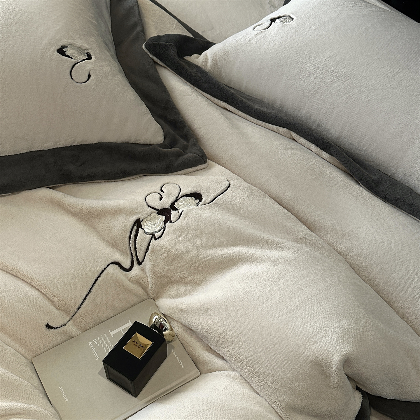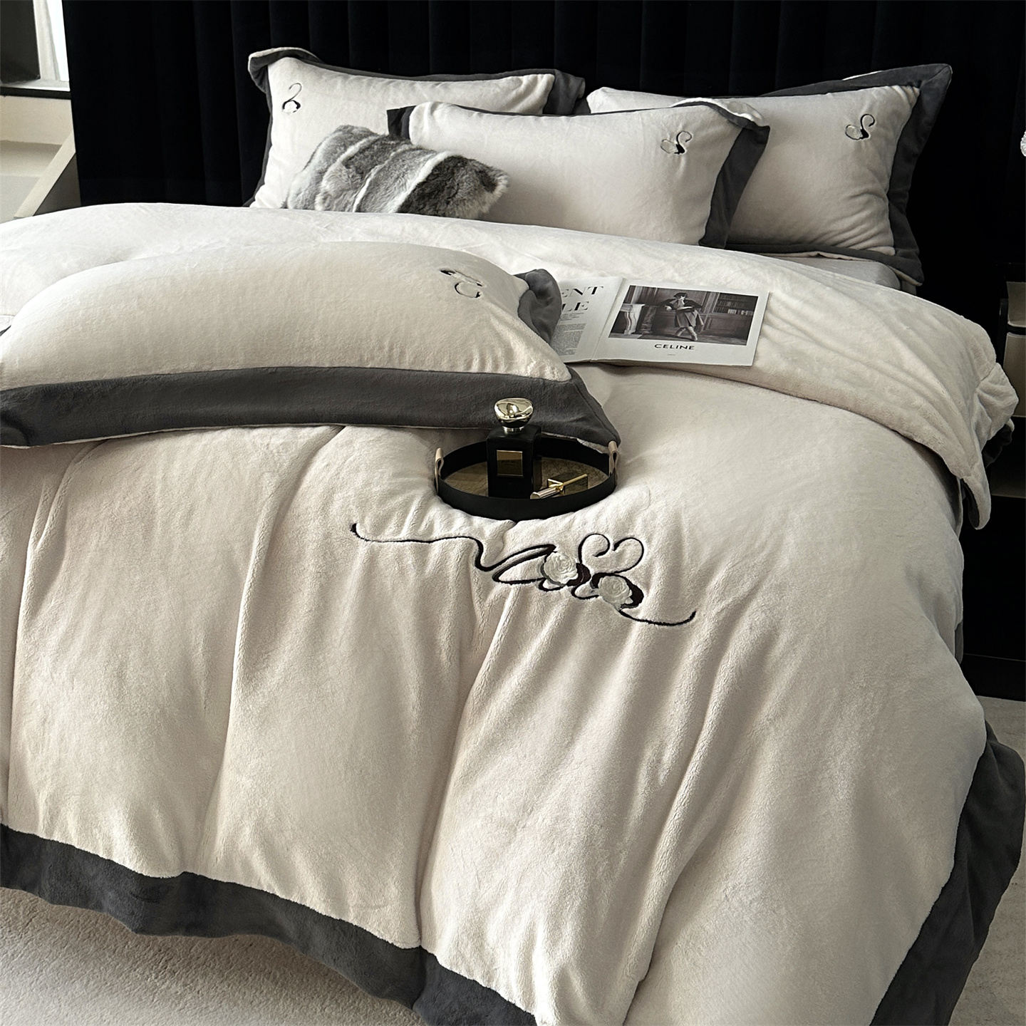 (总)南泉坊 2025新款230克全消光牛奶绒刺绣四件套,墨尔本-豆沙,墨尔本-灰,墨尔本-咖