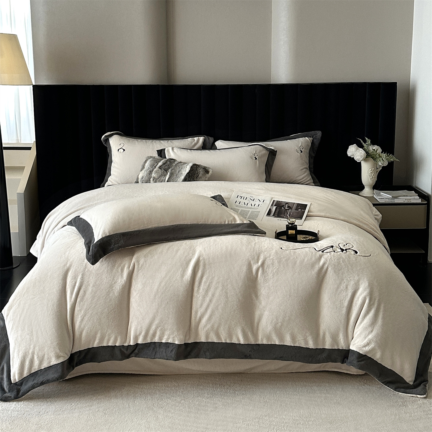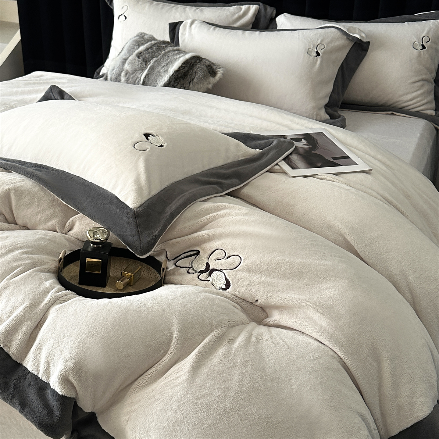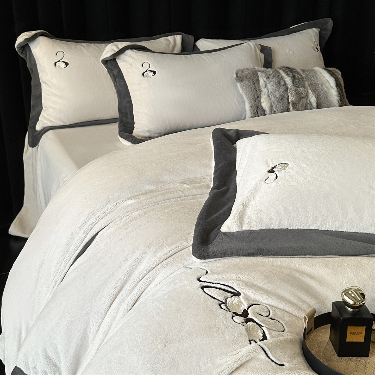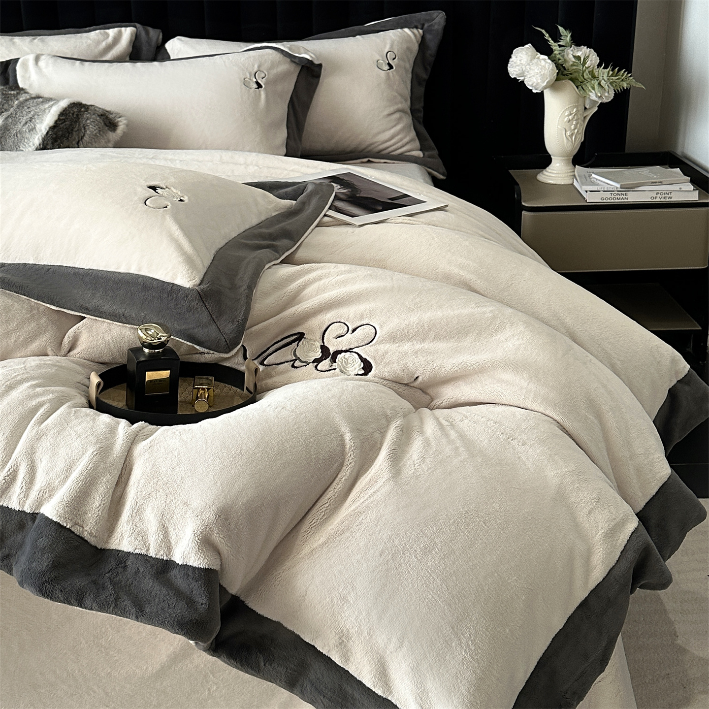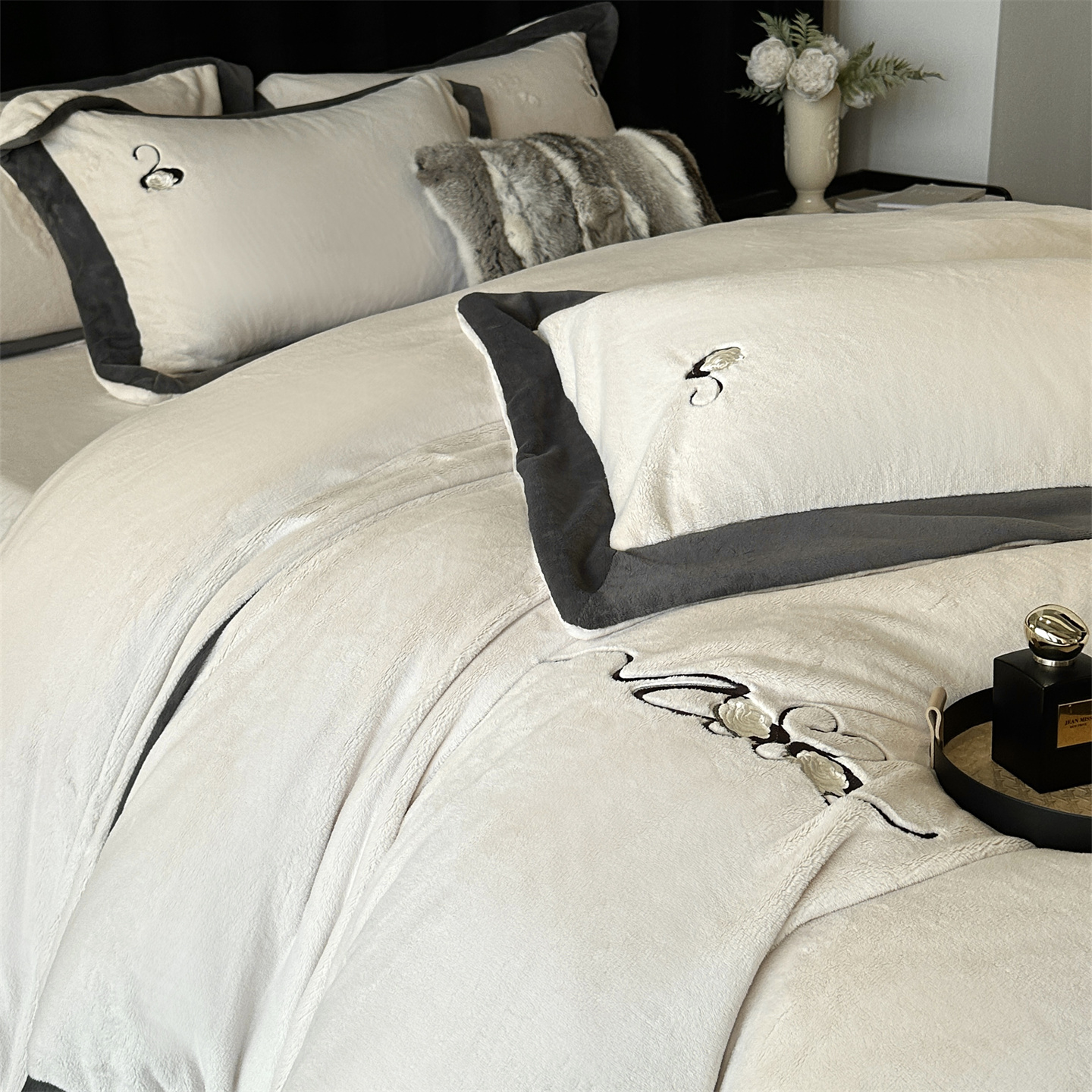 (总)南泉坊 2025新款230克全消光牛奶绒刺绣四件套,墨尔本-豆沙,墨尔本-灰,墨尔本-咖
