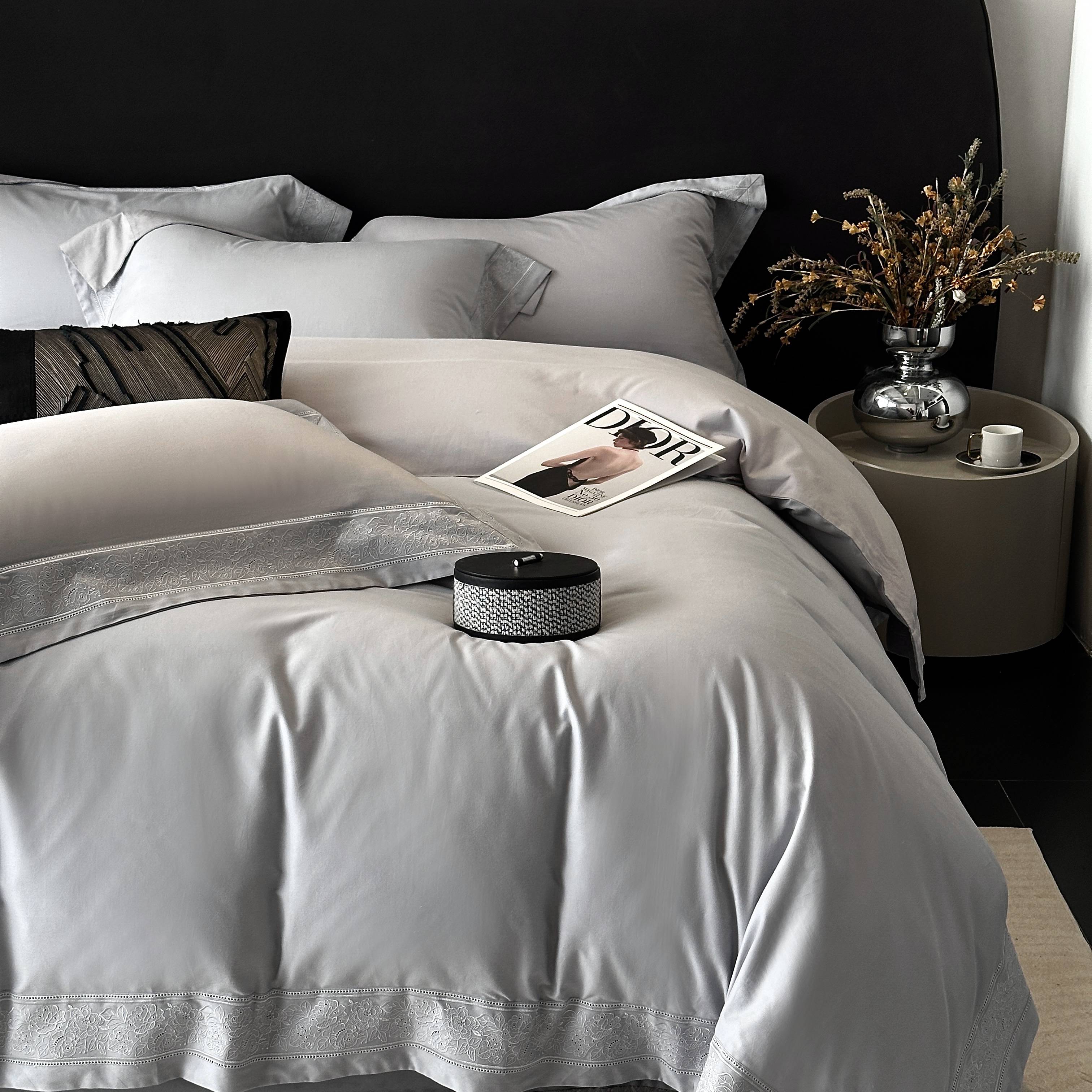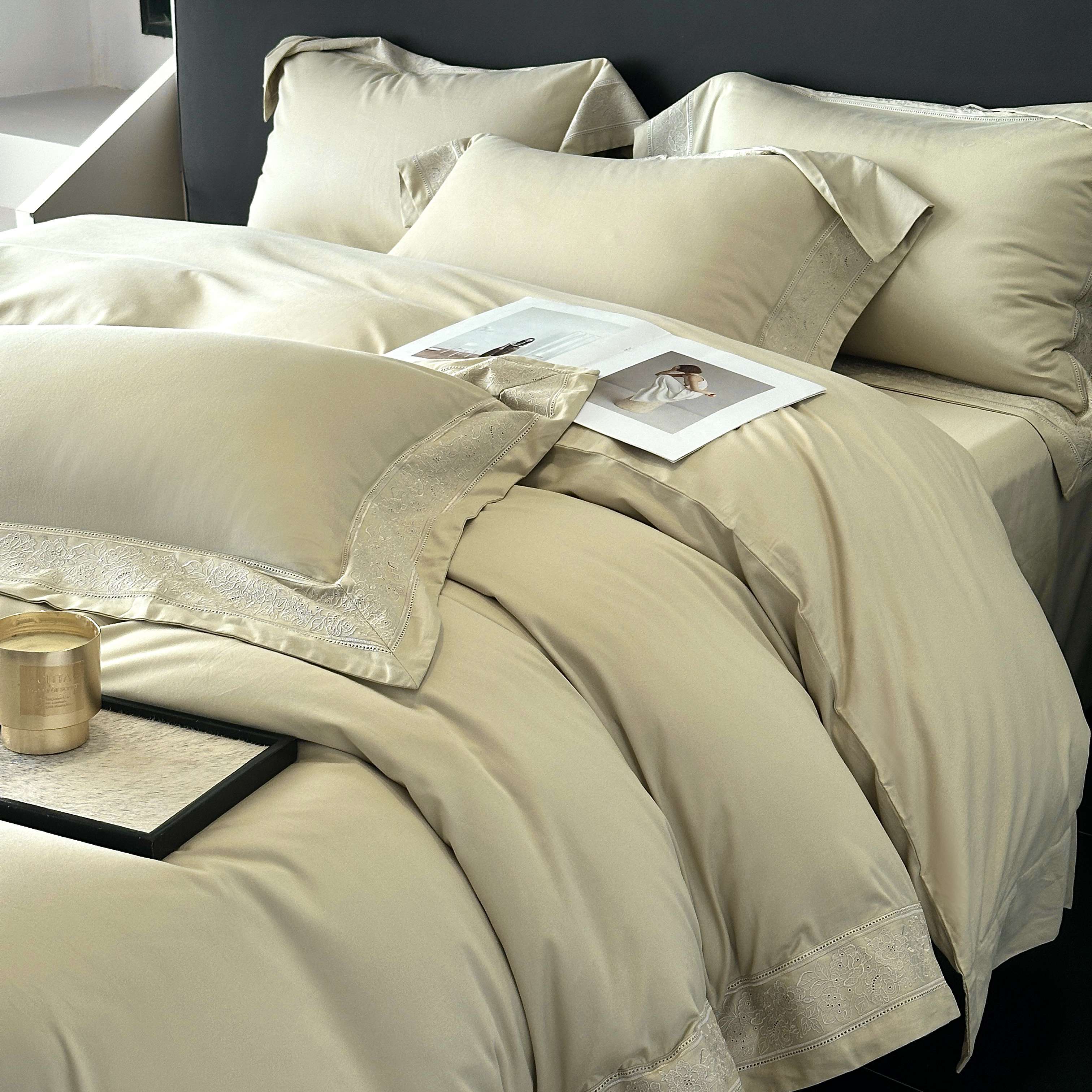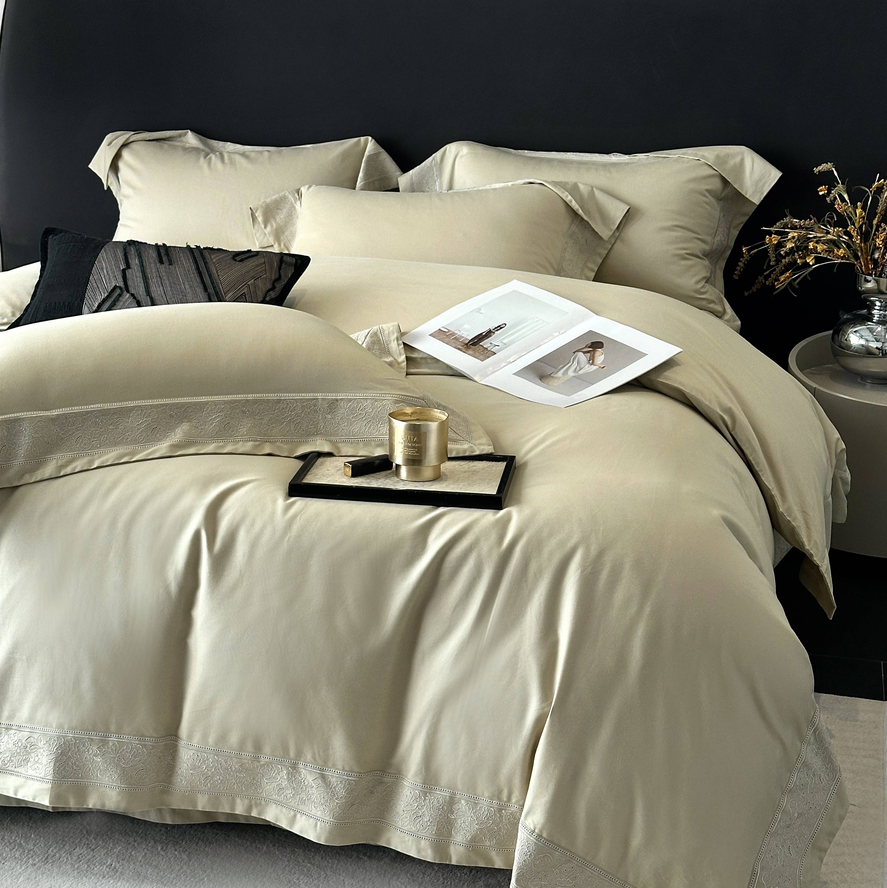 (总)南泉坊 2025新款230克全消光牛奶绒刺绣四件套,墨尔本-豆沙,墨尔本-灰,墨尔本-咖