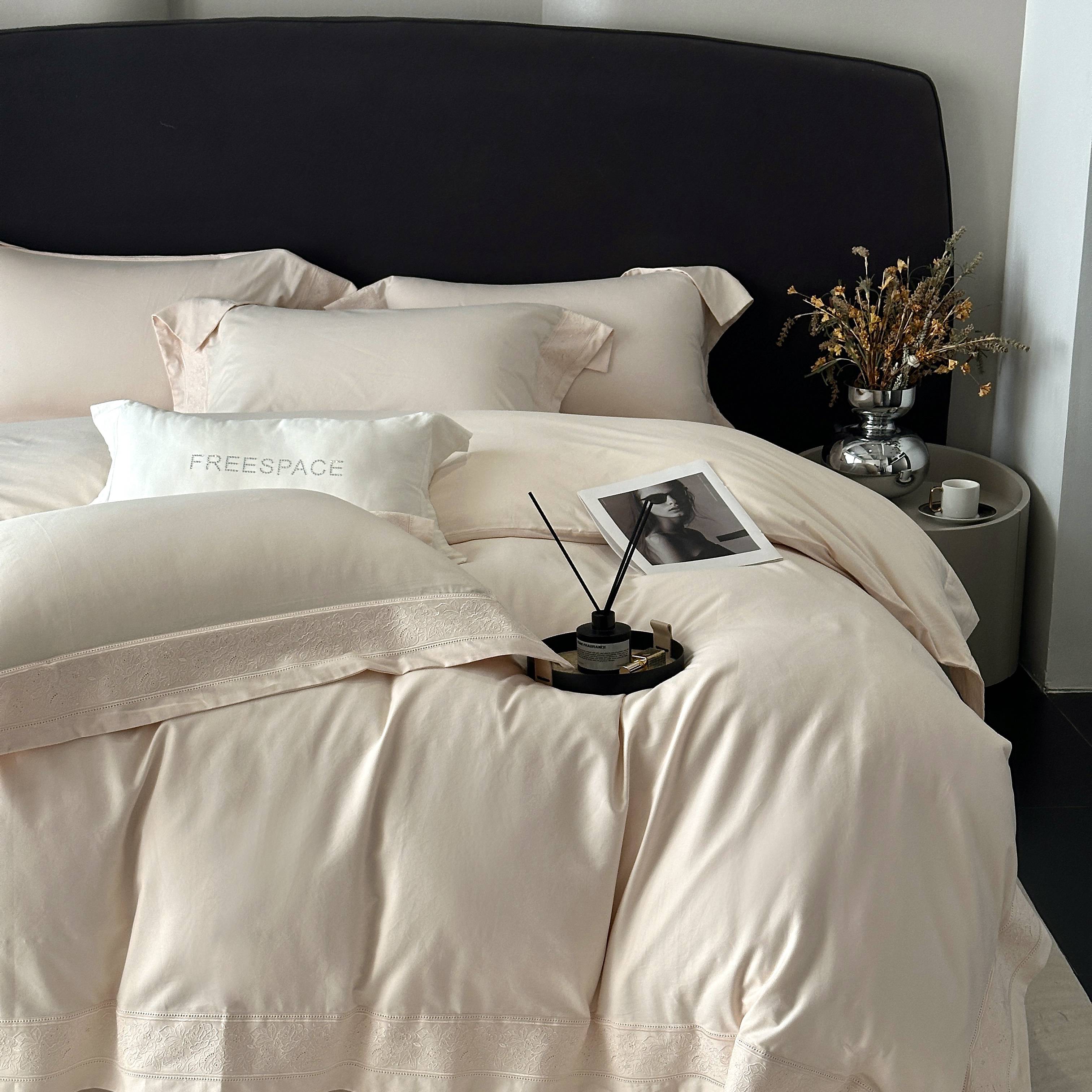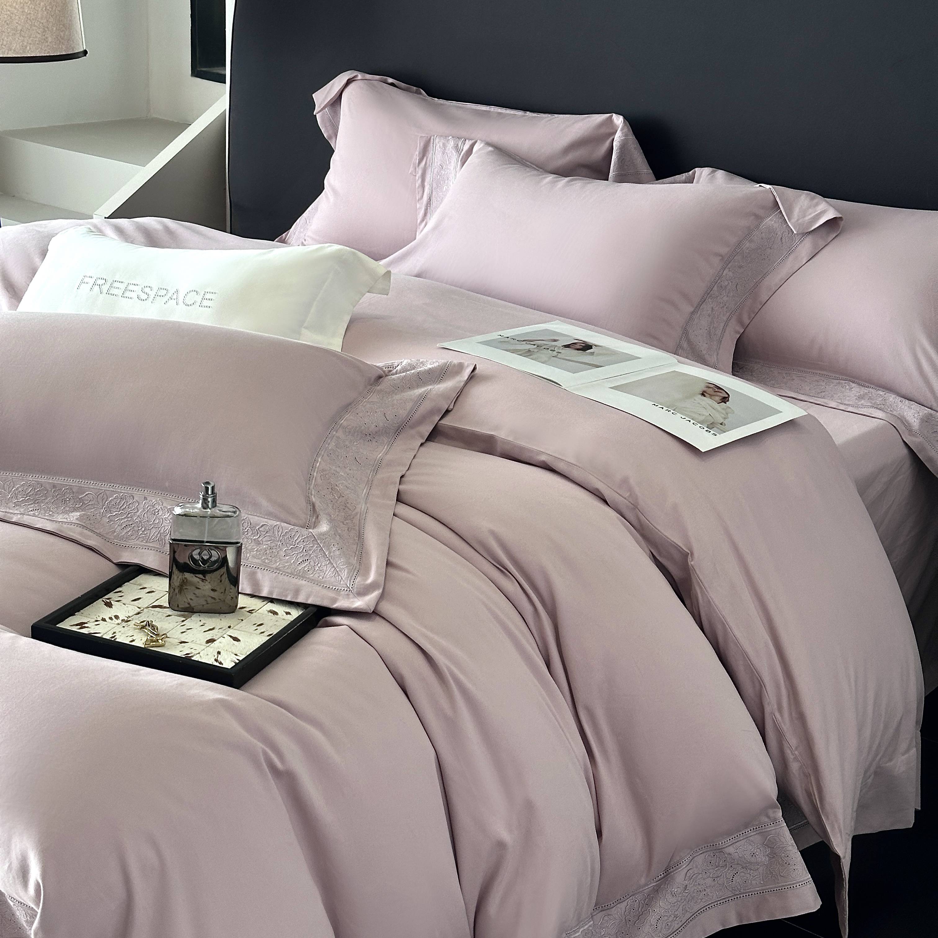 (总)南泉坊 2025新款60s全棉纯棉磨毛染色镂空花边拼角四件套 会员-20【线上控价不低于398,券后不低于368】