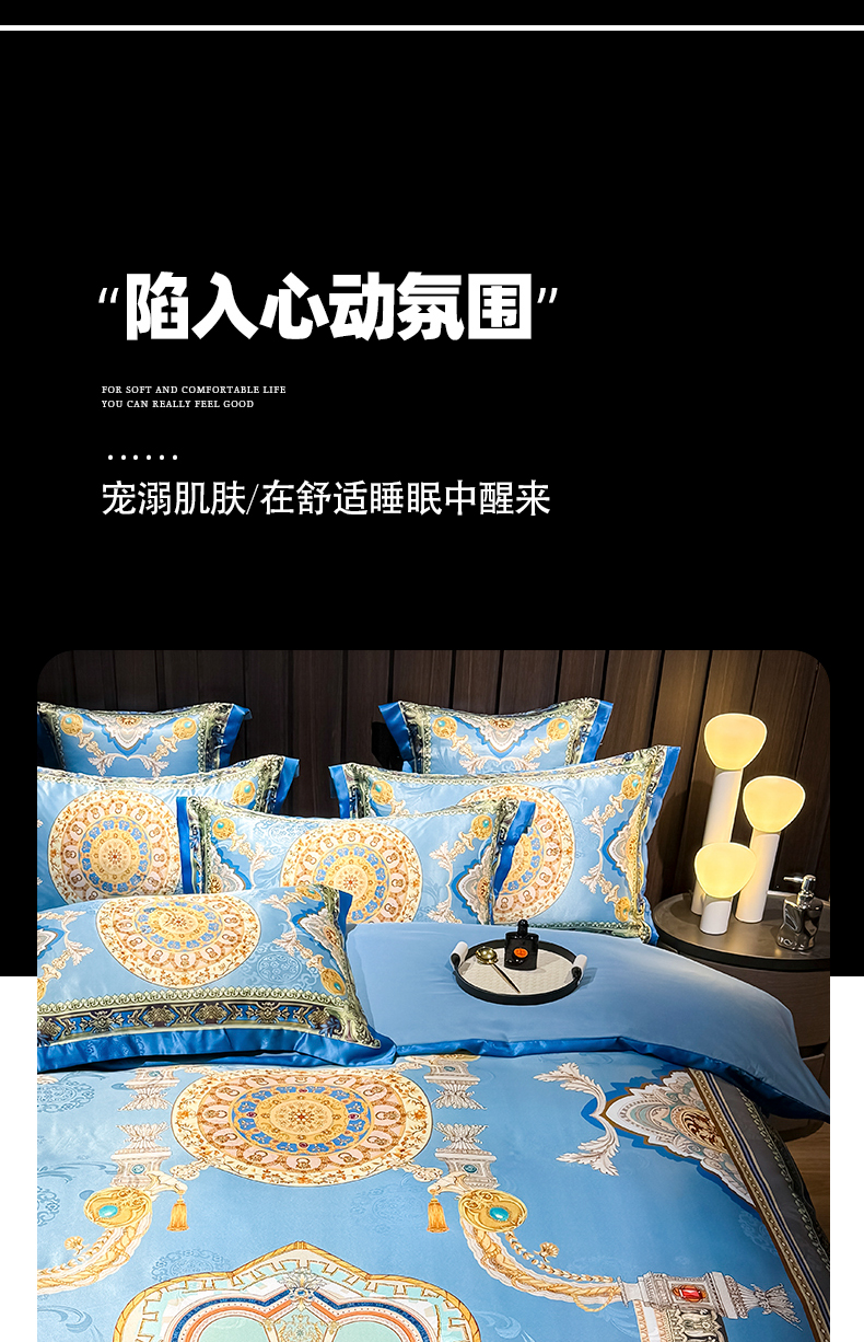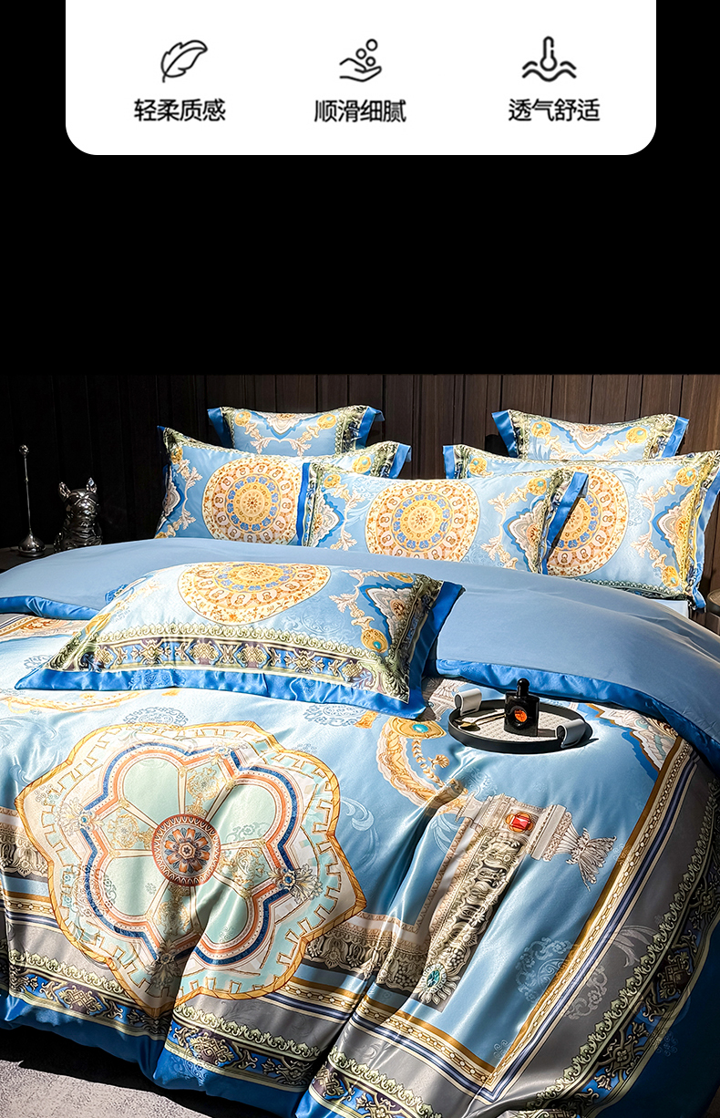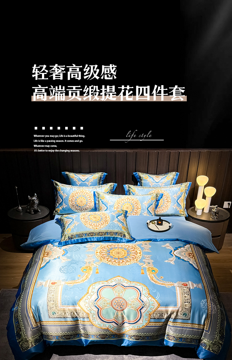 (总)七夜居 2025新款欧式轻奢高精密色织贡缎提花四件套礼盒装,一曲,繁茂,飞绒落羽,幻境,莫离,踏山河,波尔塔,长相思,莱肯,摩登都市,海蓝之心,锦绣年华,牡丹盛世,牡丹之歌,一叶知秋