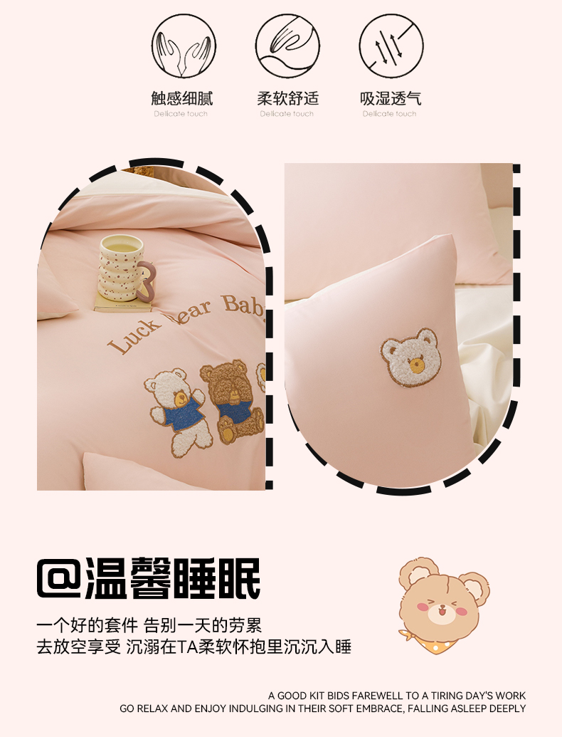 商品名称:(总)悦兴家纺 2025新款A类水洗棉卡通幸运熊四件套(含买家秀)