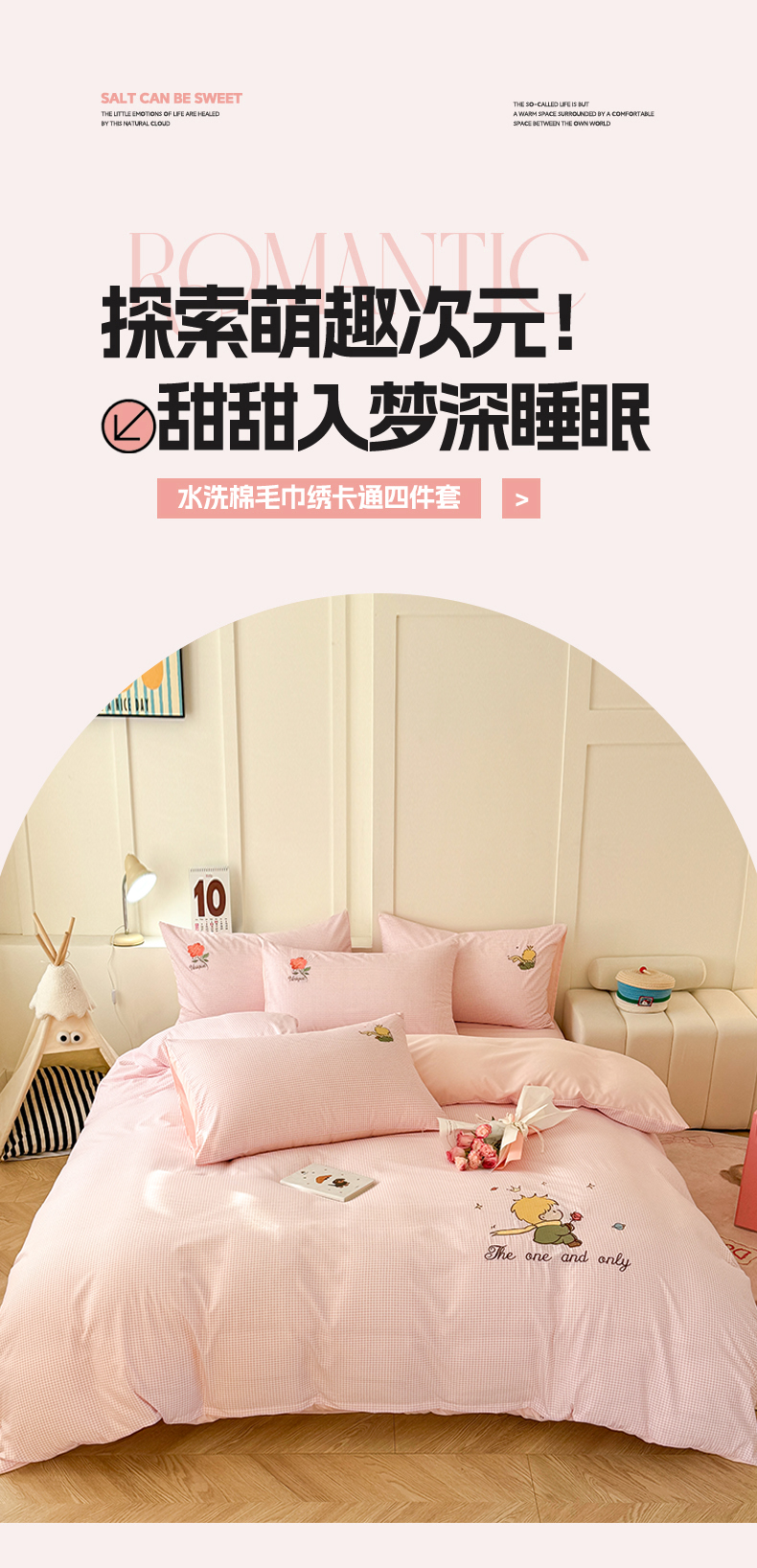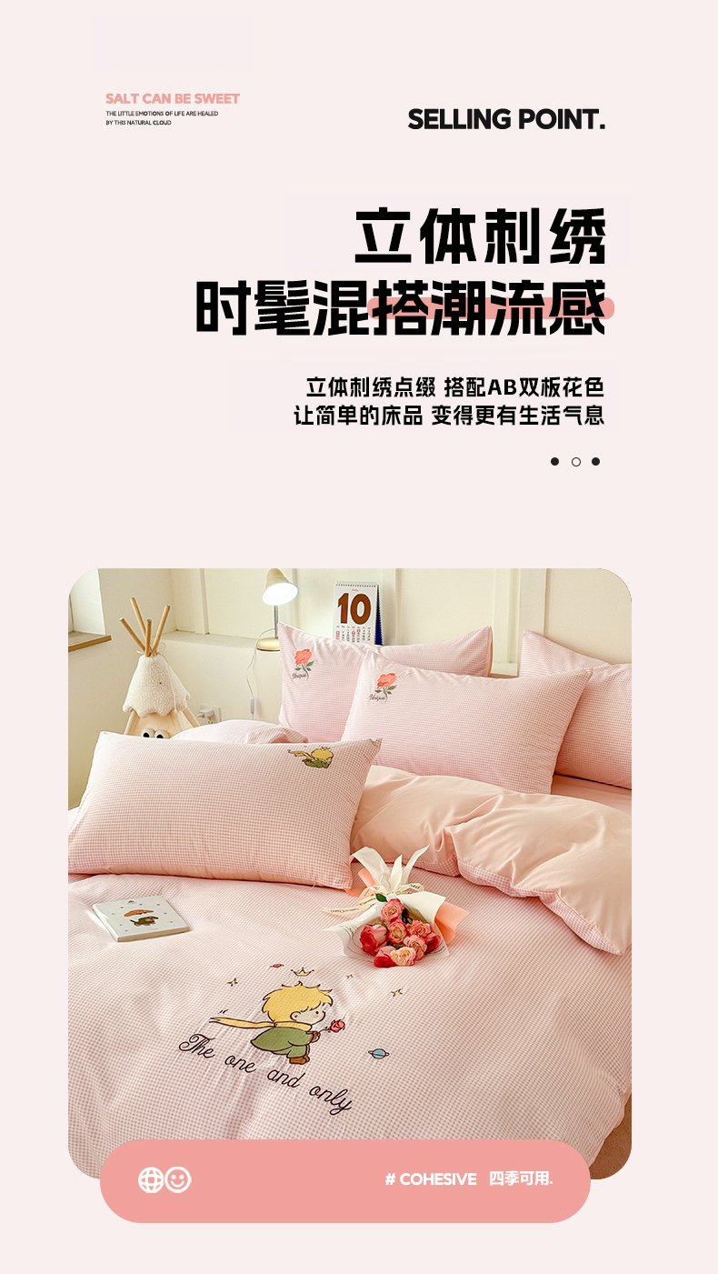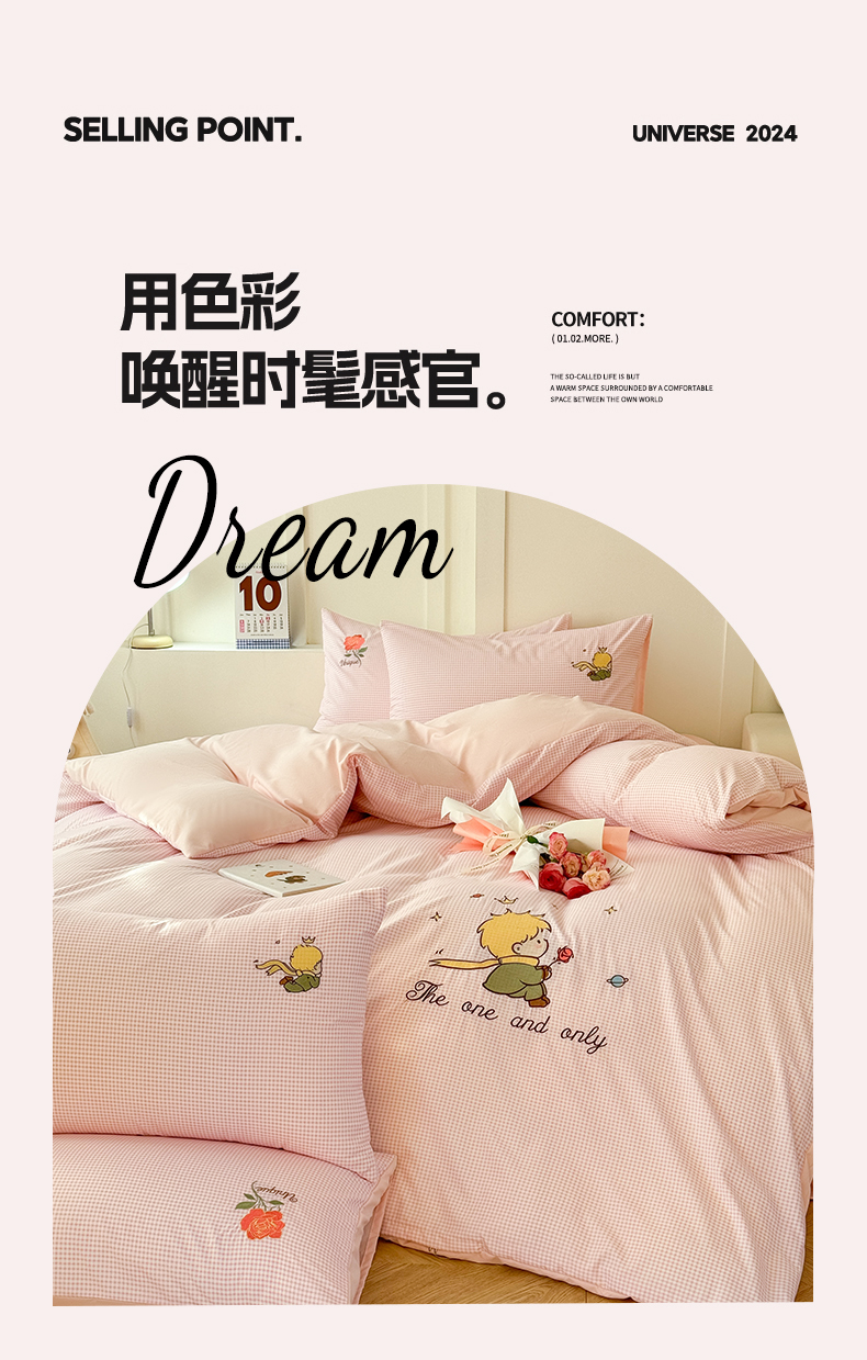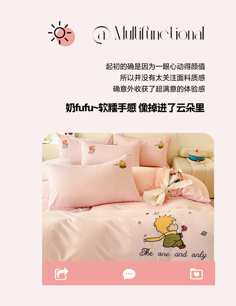 当前位置: 91家纺网 > 商品网购 > 床品套件 > 四件套 > 水洗棉四件套 > 悦兴家纺 2025新款A类水洗棉刺绣卡通小王子系列四件套(含买家秀) 小王子粉格