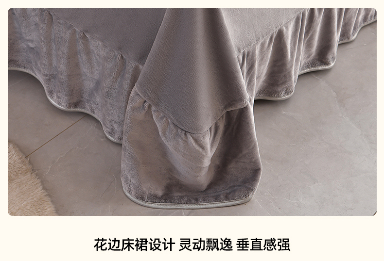 商品名称:沐星纪(美得佳)布业 2025新款加厚牛奶绒印花四件套 叶舞绒华-灰