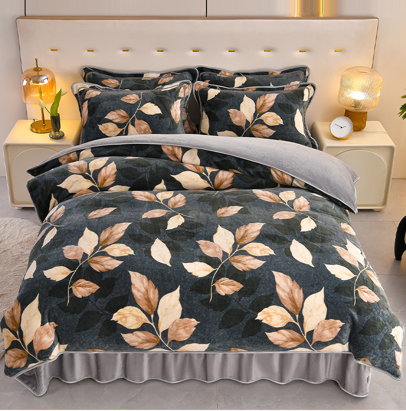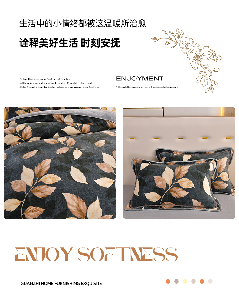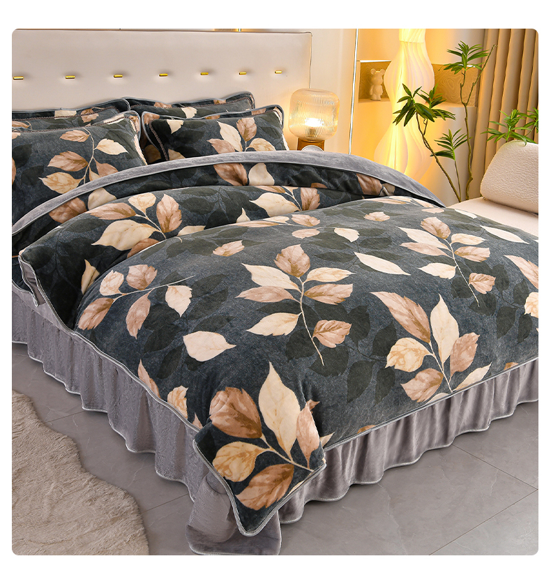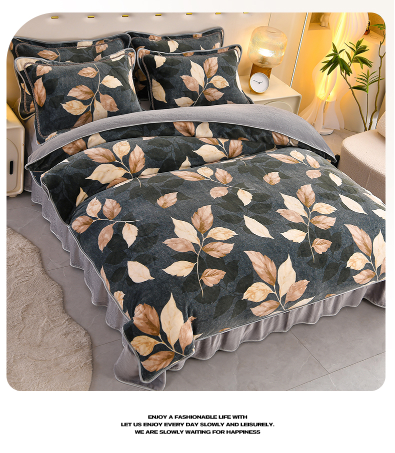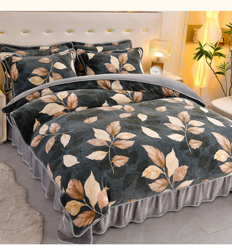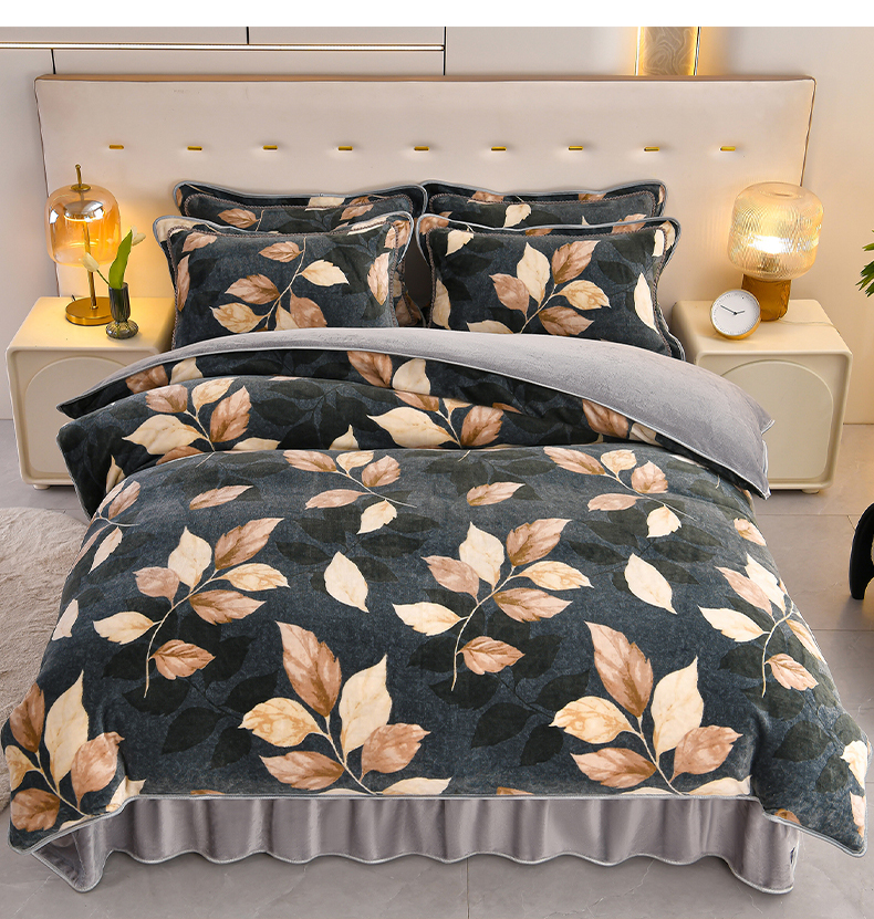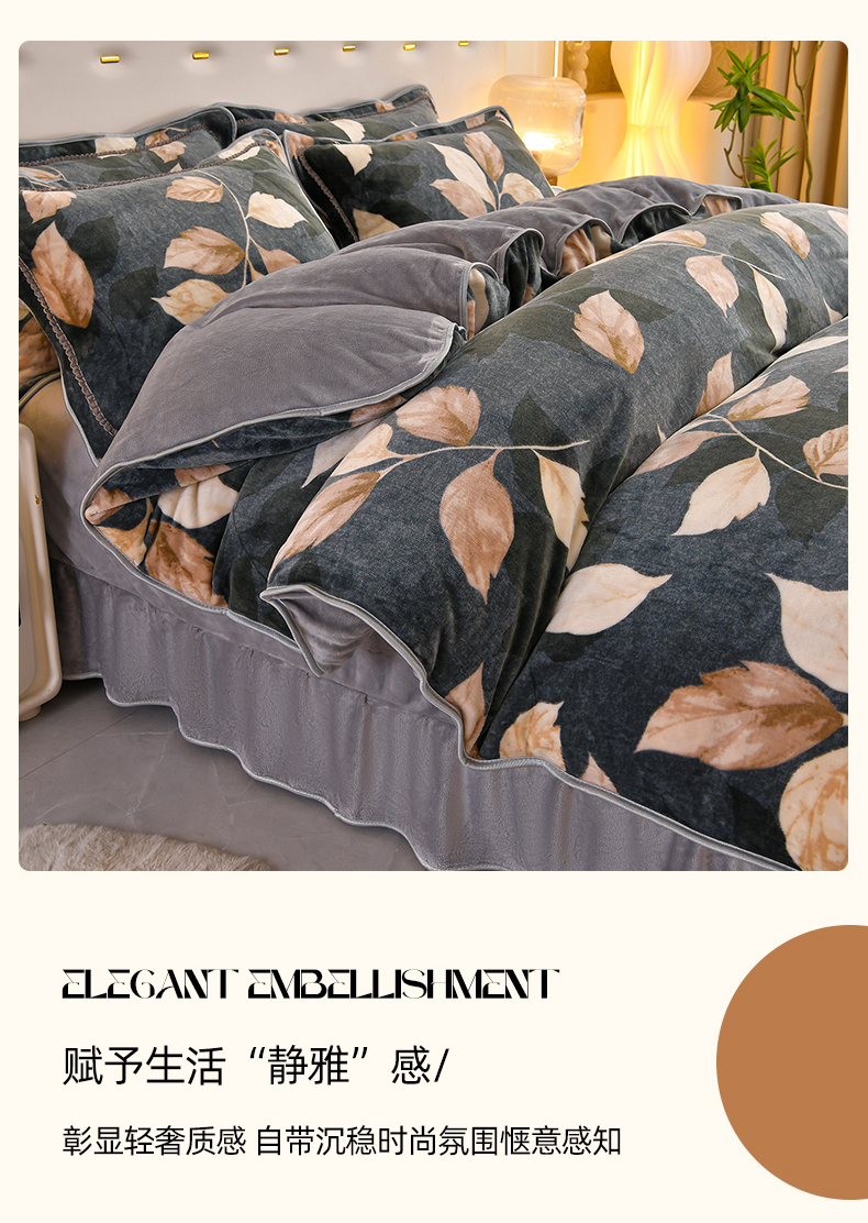 沐星纪(美得佳)布业 2025新款加厚牛奶绒印花四件套 叶舞绒华-灰