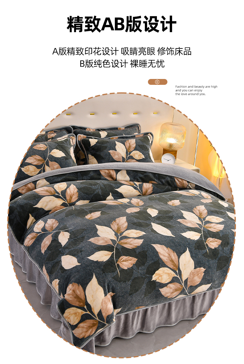 (总)沐星纪(美得佳)布业 2025新款加厚牛奶绒印花四件套,鎏金满地,叶舞绒华-灰,简爱,粉黛胭脂,叶舞绒华-咖