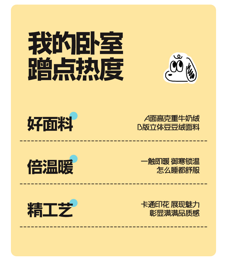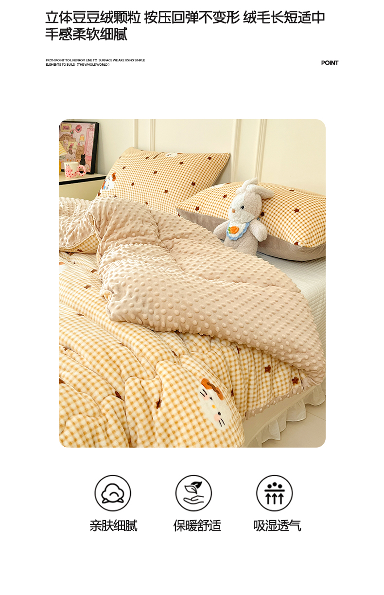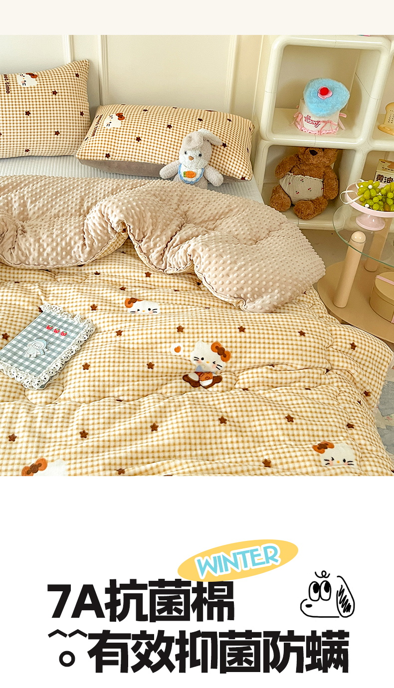 商品名称:贝扬思家纺 2025新款卡通牛奶绒豆豆绒抗菌被冬被被子被芯-奶豆 奶豆-可可猫星