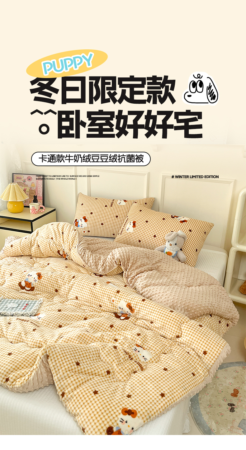 (总)贝扬思家纺 2025新款卡通牛奶绒豆豆绒抗菌被冬被被子被芯-奶豆,奶豆-彩珍珠,奶豆-蝴蝶点点心,奶豆-可可猫星,奶豆-蓝格英伦熊,奶豆-卖萌修狗,奶豆-绒绒小狗粉,奶豆-绒绒小狗蓝,奶豆-疏影