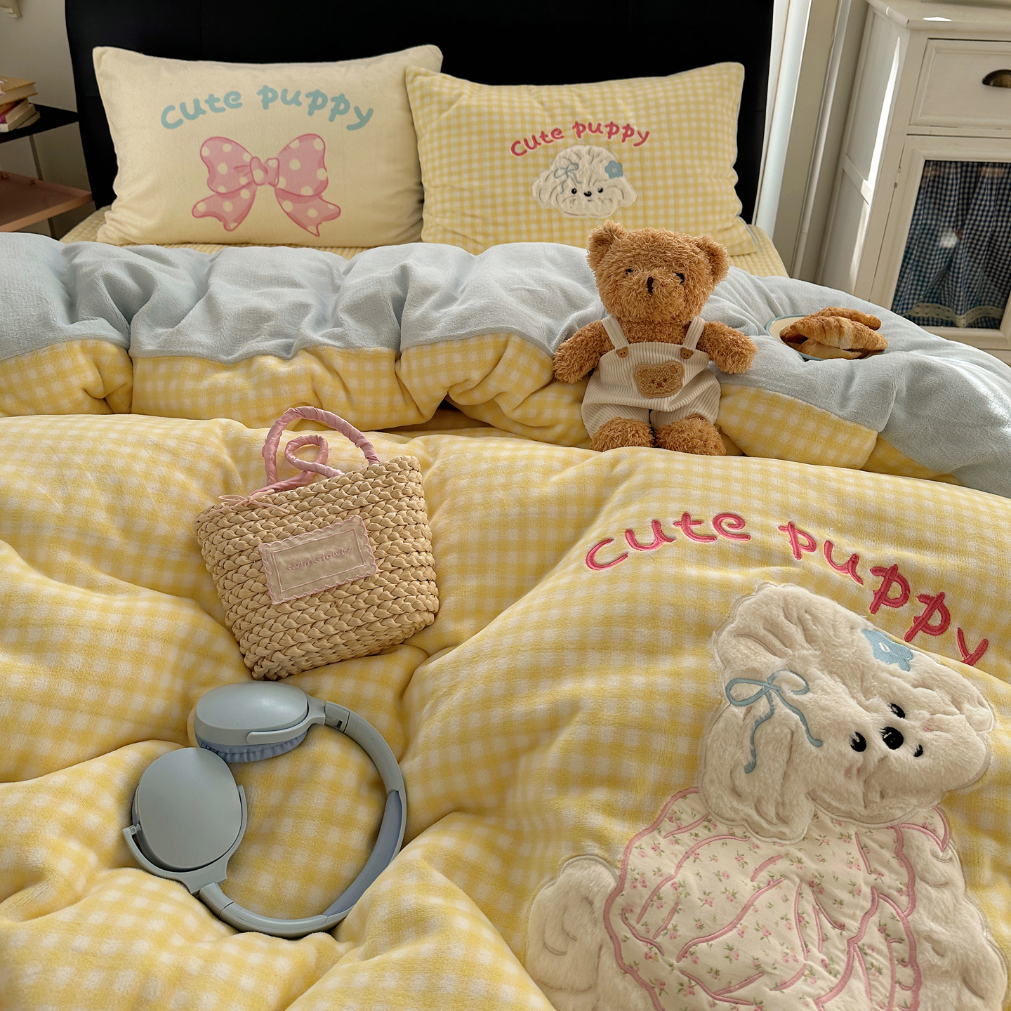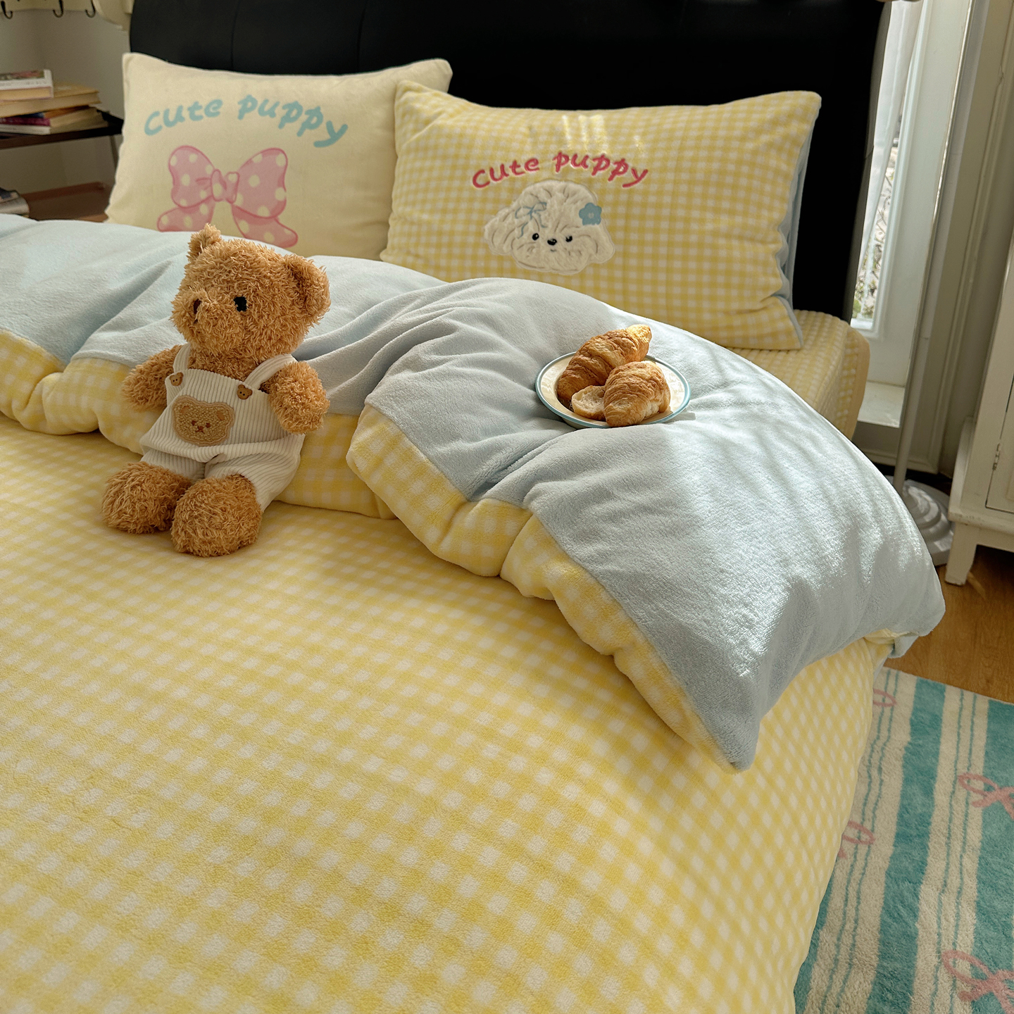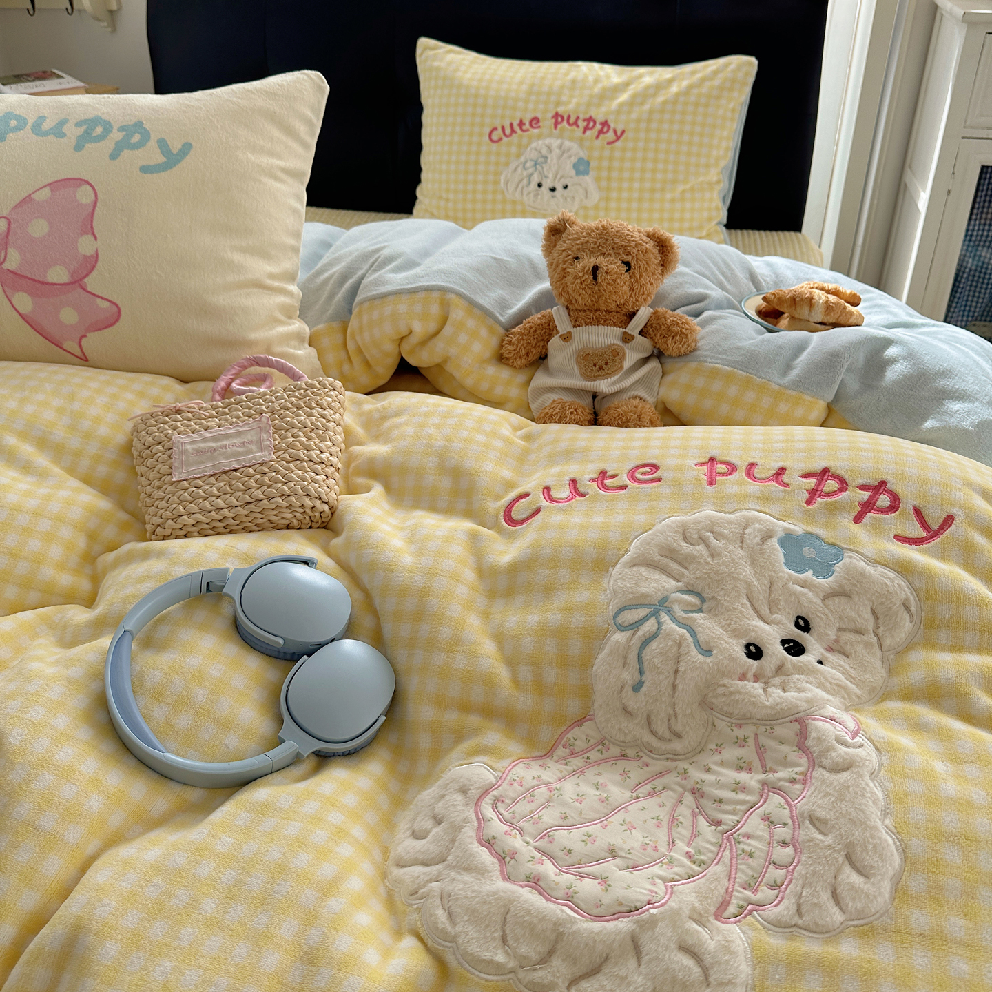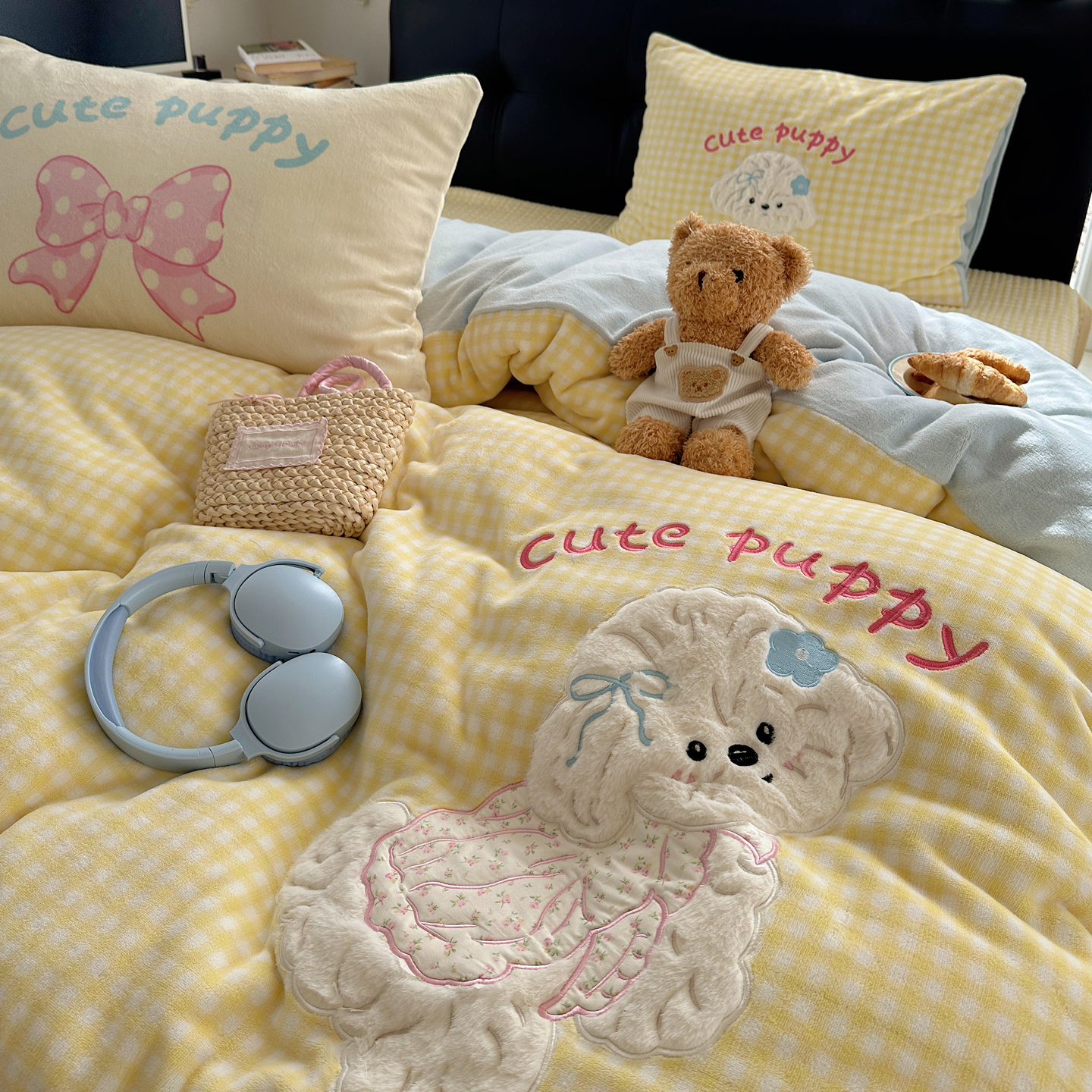 觅糖家纺 2025新款大版卡通牛奶绒床盖四件套 奶油小狗