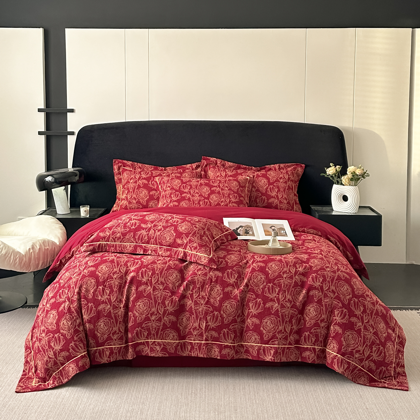 (总)金丝鸟家纺 2025新款全棉纯棉色织提花婚庆四件套,艾莎,洛神玫瑰