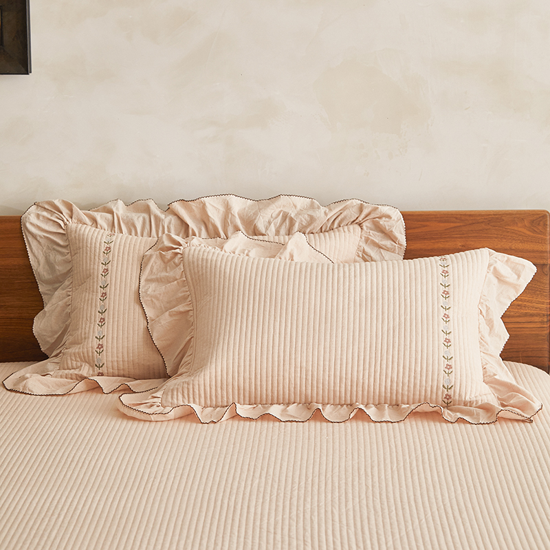 (总)上喜 2026新款棉麻小花刺绣款床盖多功能被子系列,麻本色,麻粉色