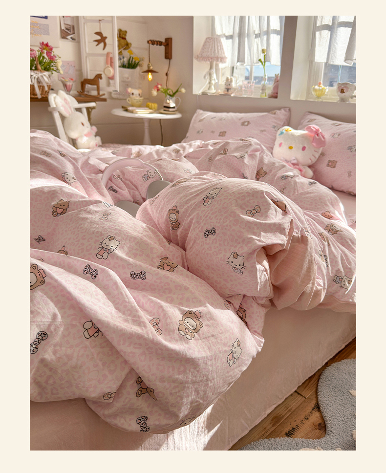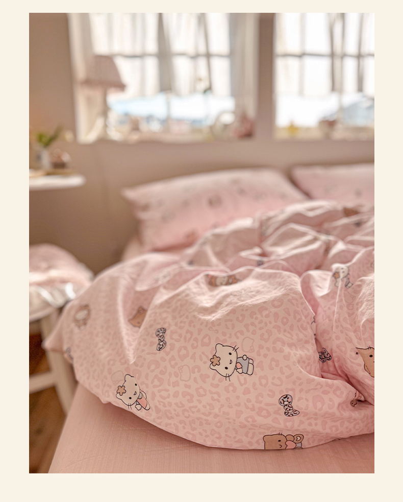 当前位置: 91家纺网 > 商品网购 > 床品套件 > 四件套 > 化纤普通四件套 > 罗亿家纺 2026新款A类古法水洗仿棉云感纱四件套 俏皮豹纹-kt-粉