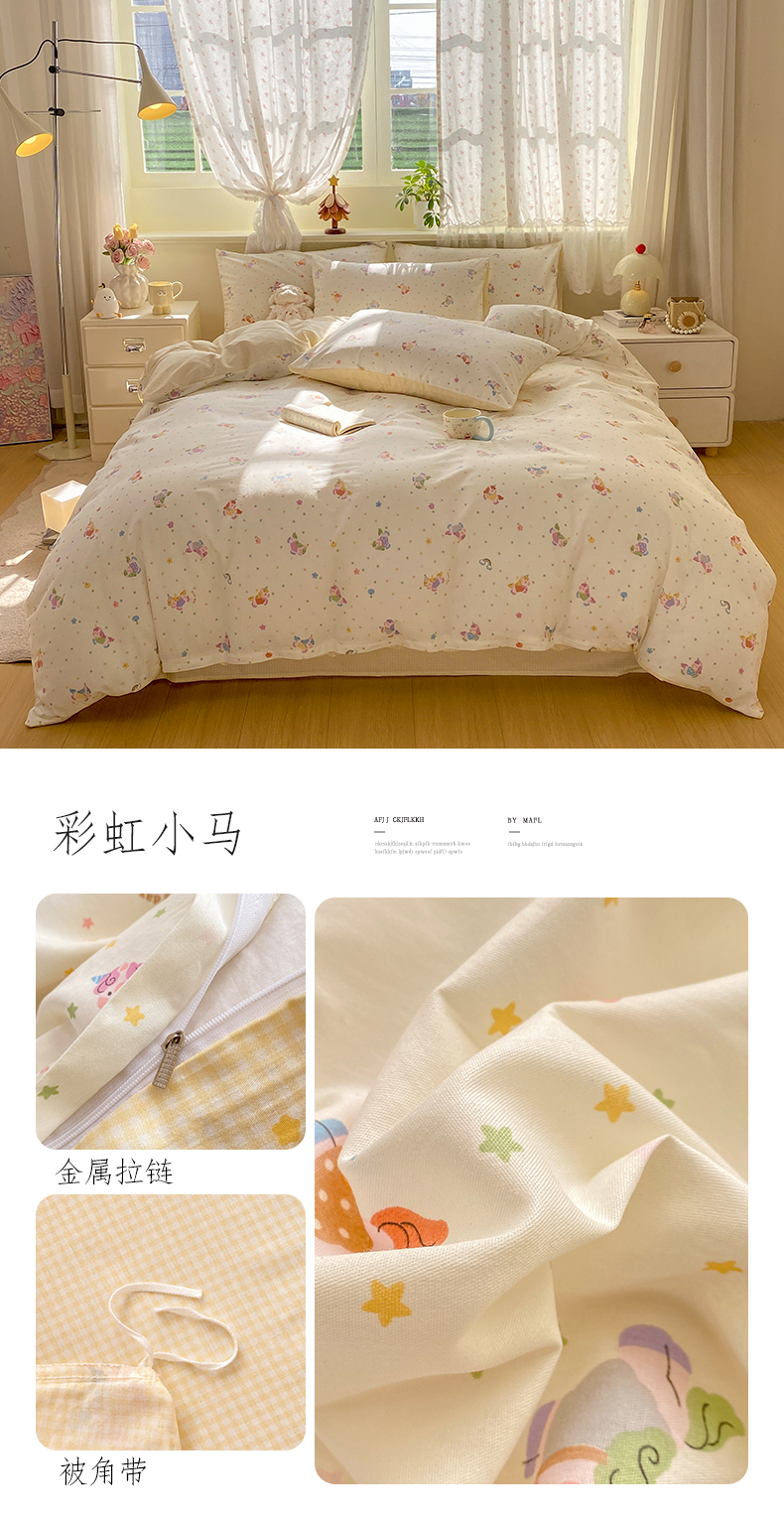 (总)红日子纺织品 2026新款12868纯棉全棉印花卡通系列四件套,彩虹小马,多乐熊,格彩小象,橘意甜宠,萌心熊宝,迷你爱心,柠檬小镇,普维斯,甜心乐园-紫,小熊慕斯,印象樱桃,云边花漾