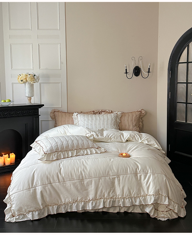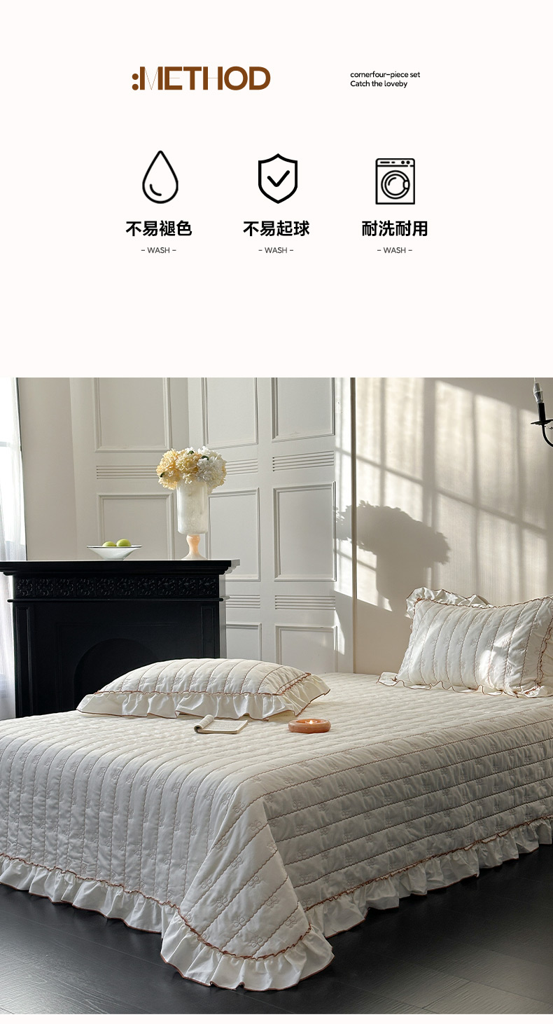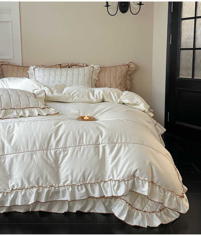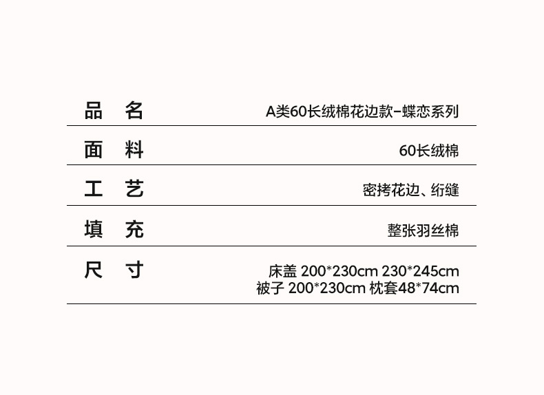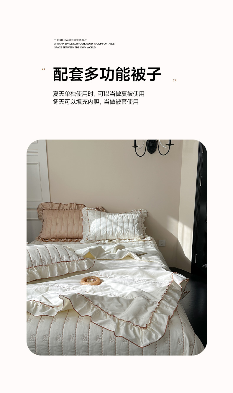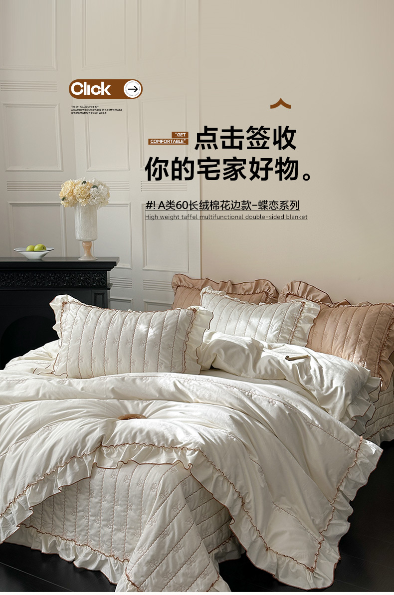 (总)琳可家居 2026新款60S长绒棉花边床盖A类双面全棉高温水洗-蝶恋系列,蝶恋-暖白,蝶恋-卡其,蝶恋-雾粉,组合