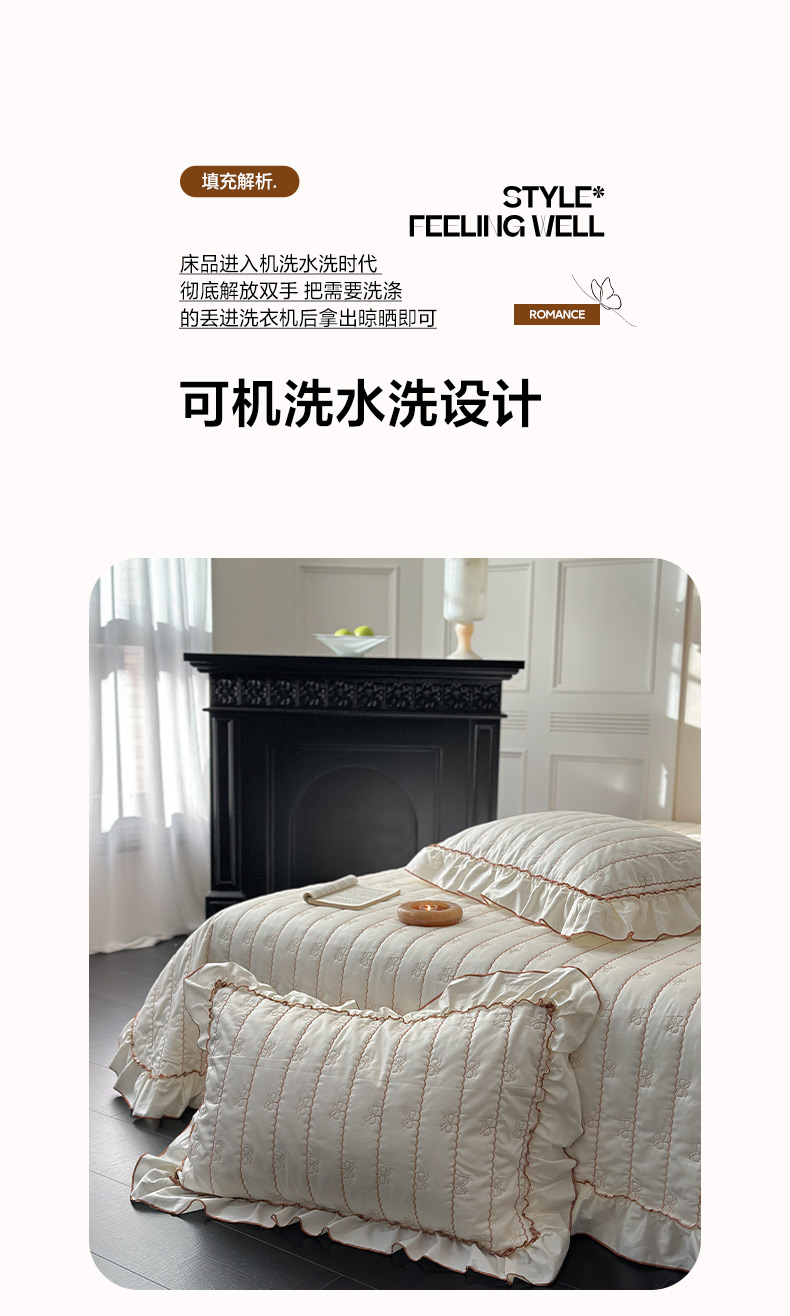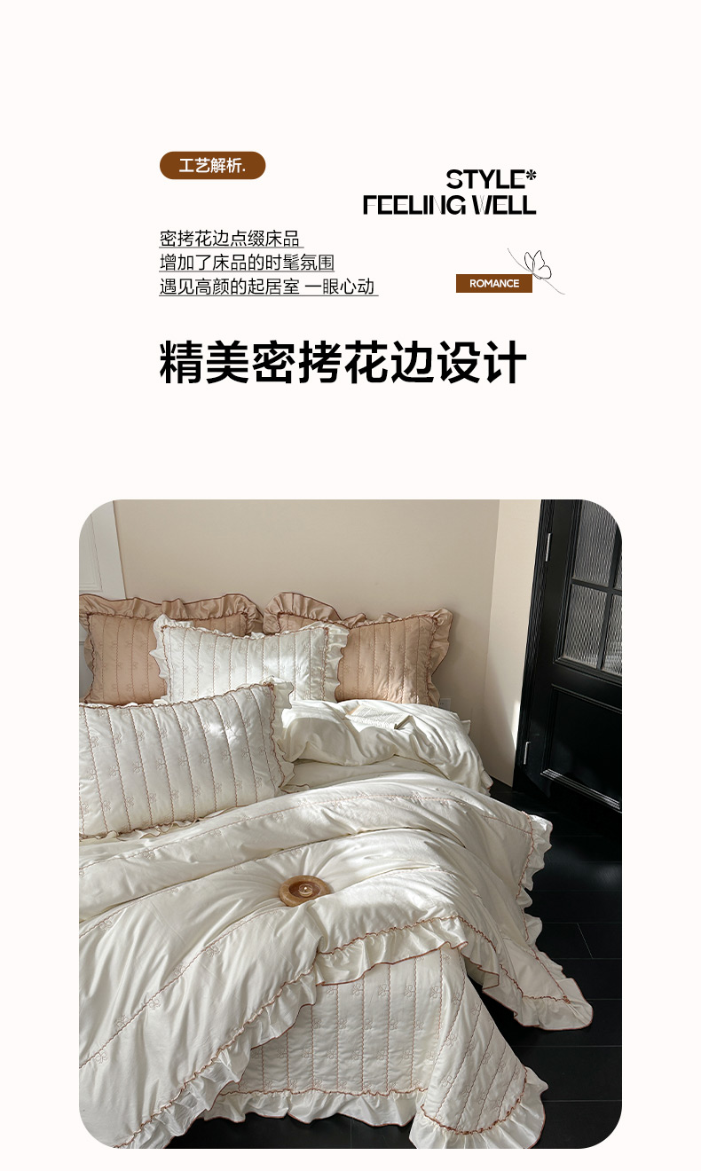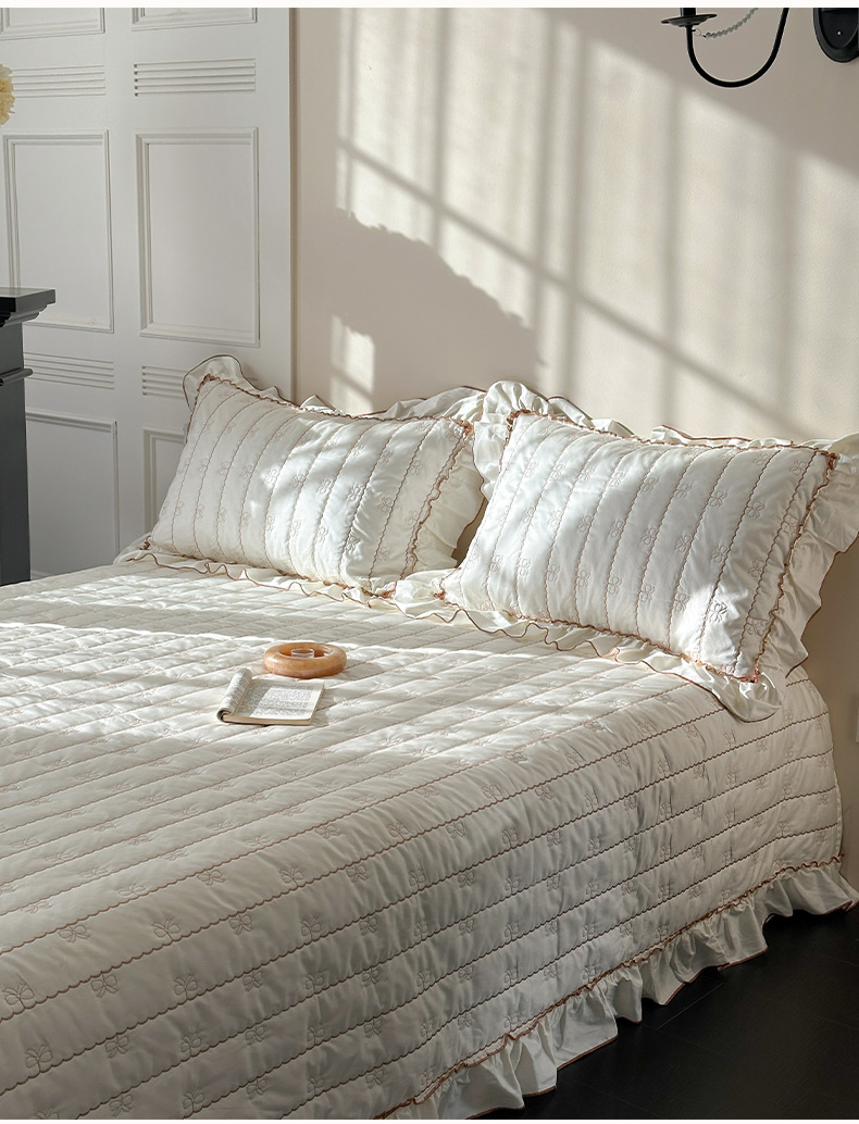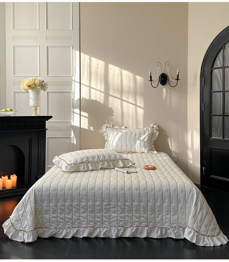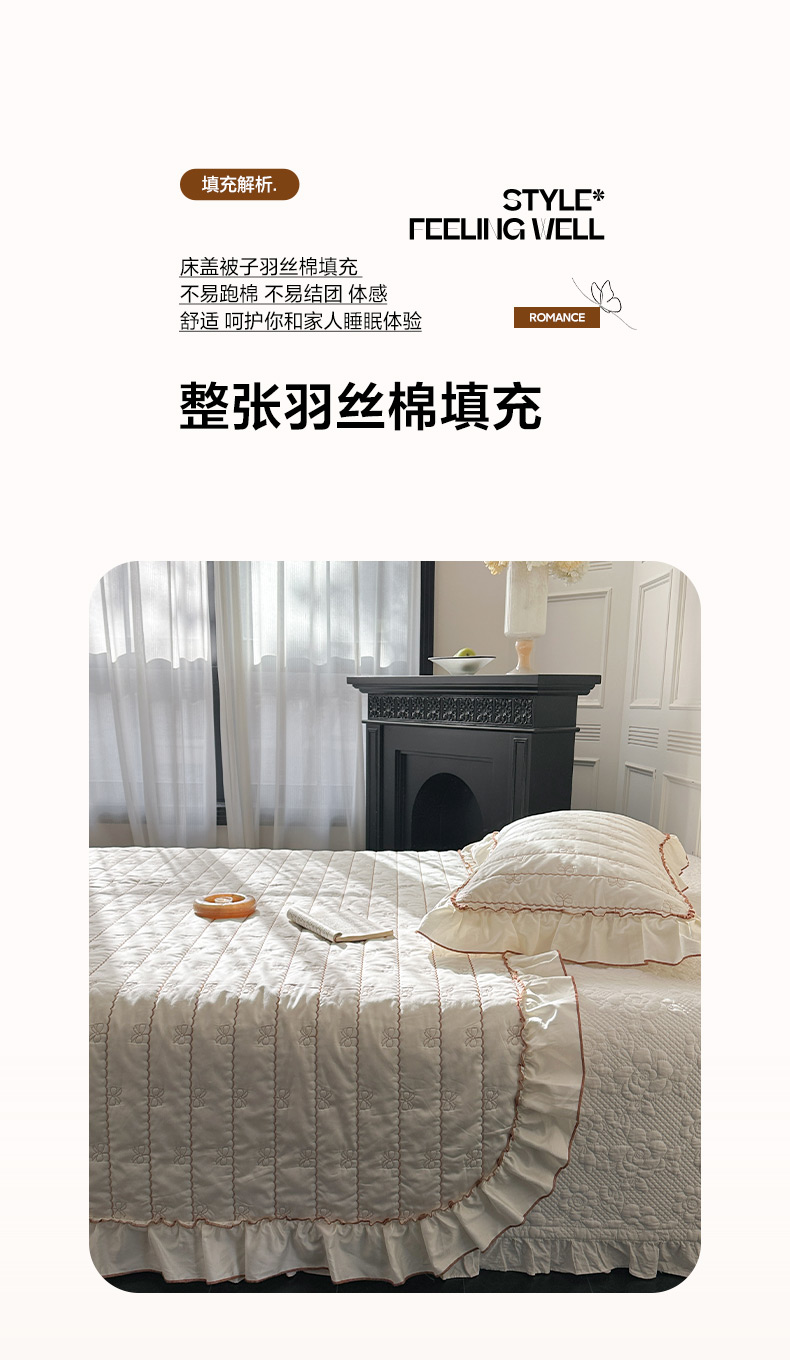 商品名称:琳可家居 2026新款60S长绒棉花边床盖A类双面全棉高温水洗-蝶恋系列 蝶恋-暖白