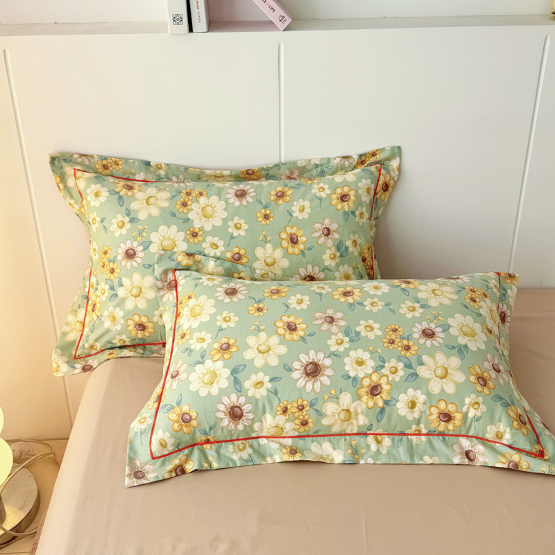 商品名称:艾迪尚家纺 2026新款133X76宽幅全棉纯棉印花单品枕套 枕套单件 木槿-绿