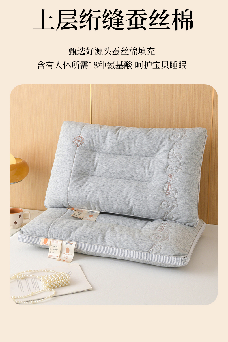 (总)仁宇枕业 2025新款新品抗氧化柔润美肌桑蚕丝枕头枕芯,组合图,抗氧化柔润美肌桑蚕丝枕-灰色,抗氧化柔润美肌桑蚕丝枕-米色