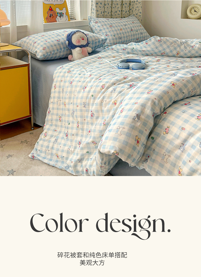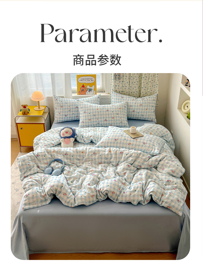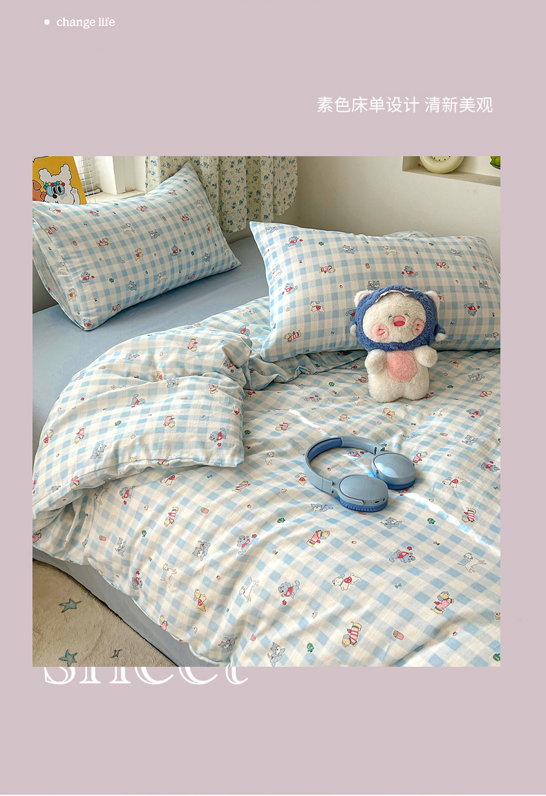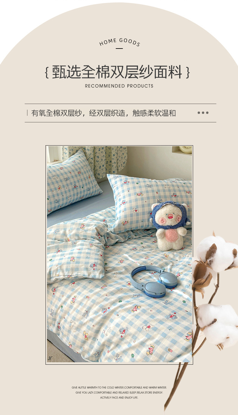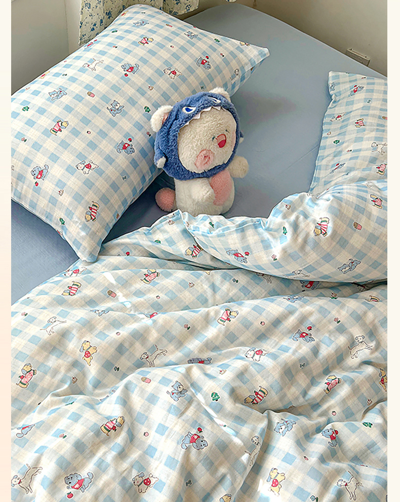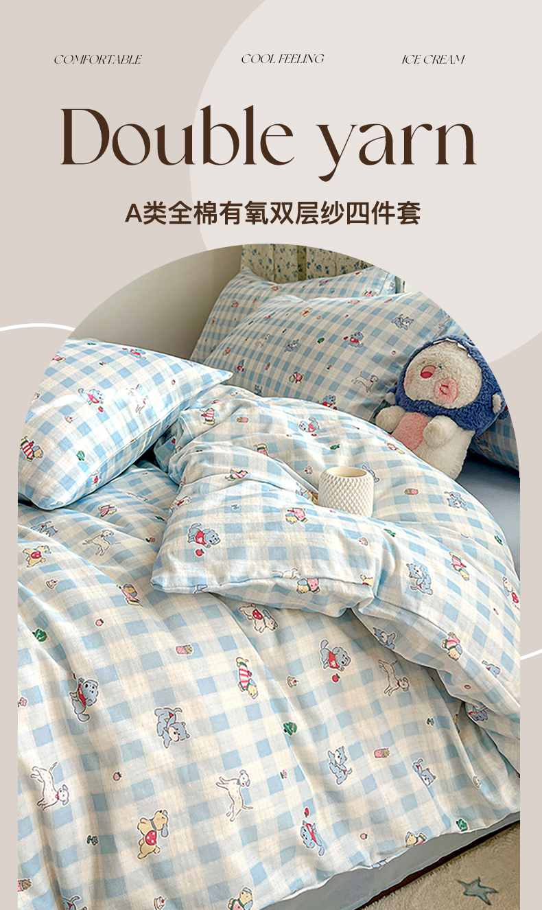 当前位置: 91家纺网 > 商品网购 > 床品套件 > 四件套 > 双层纱四件套 > 麦伦家居 2026春夏新品全棉有氧双层纱印花系列简约款四件套 格子狗狗蓝