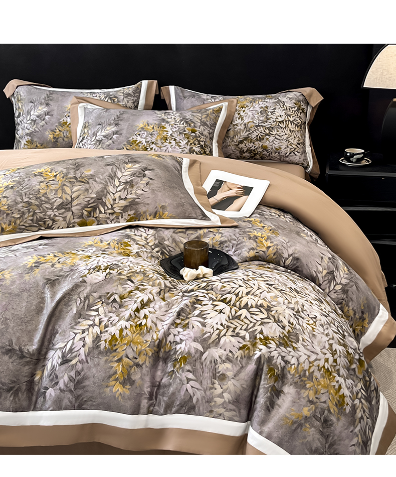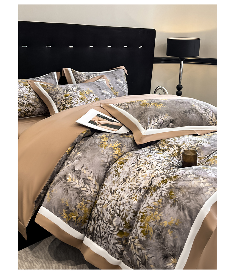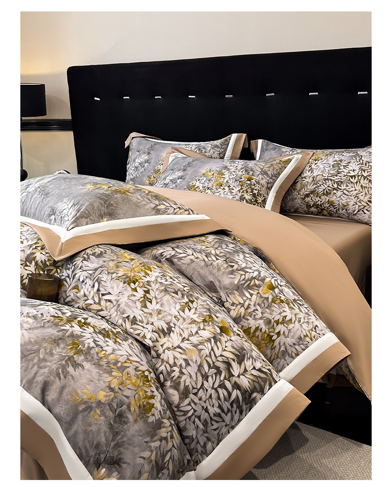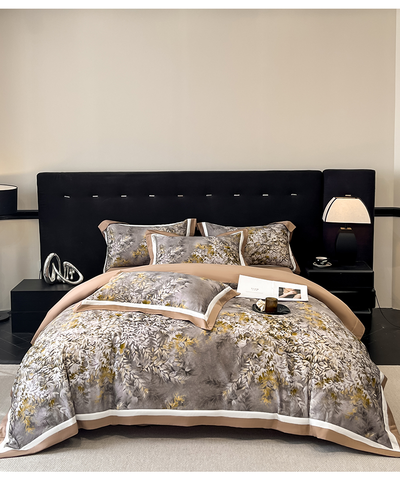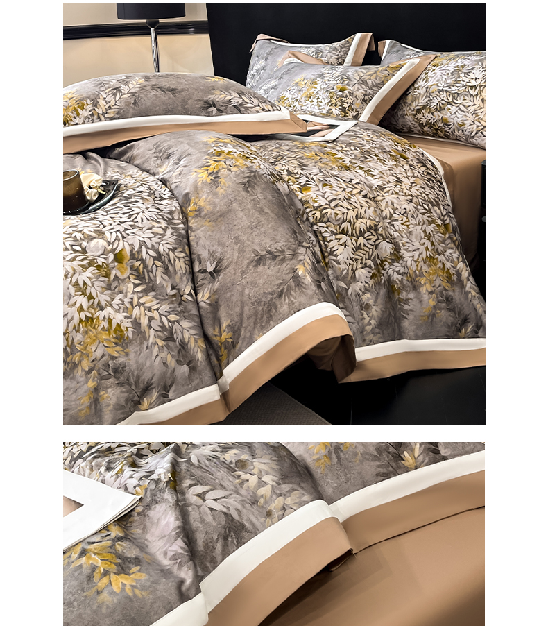 博纳家纺 2026新款正宗60支纯棉 活性数码印花 宽边高级简奢 撞色拼角 纯棉四件套 玉树临风