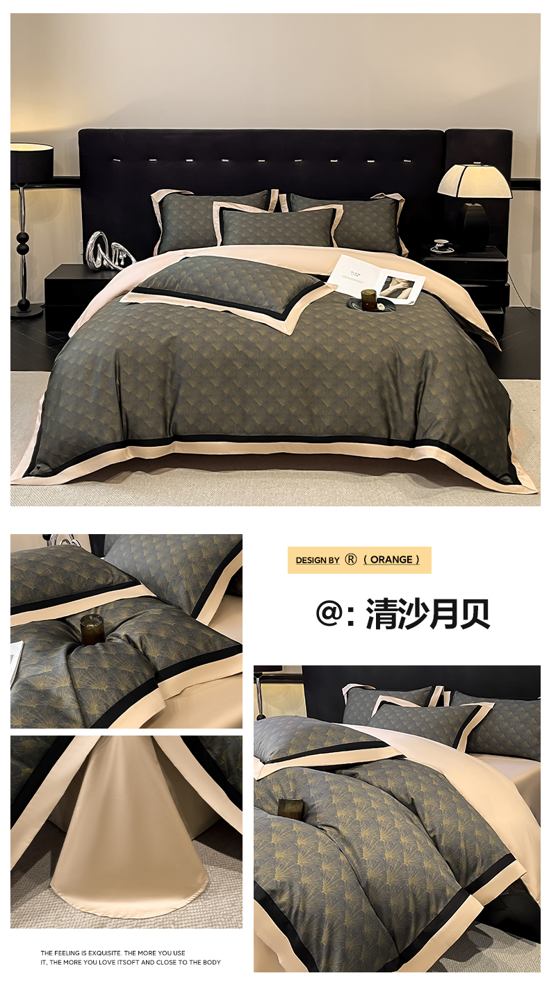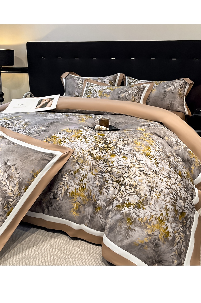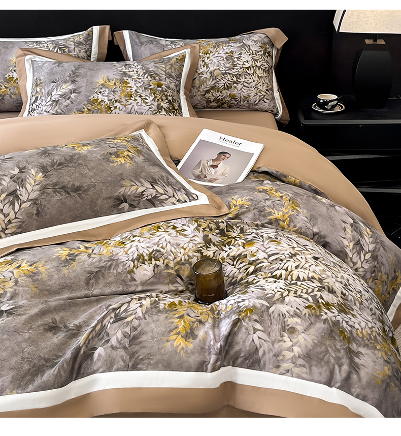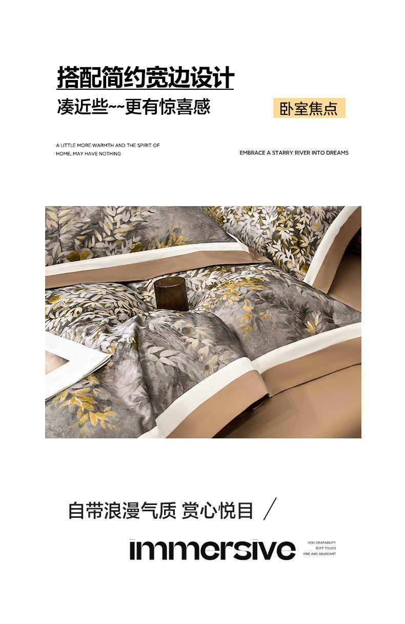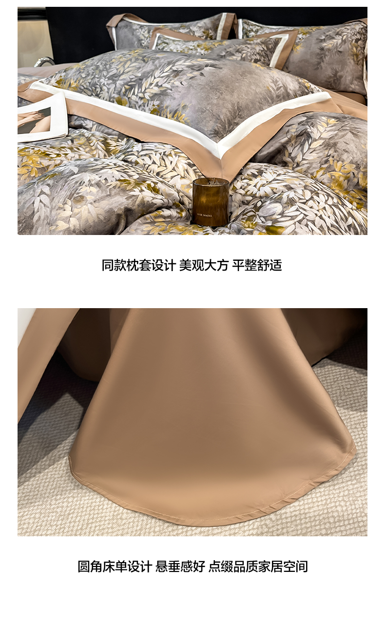 博纳家纺 2026新款正宗60支纯棉 活性数码印花 宽边高级简奢 撞色拼角 纯棉四件套 玉树临风